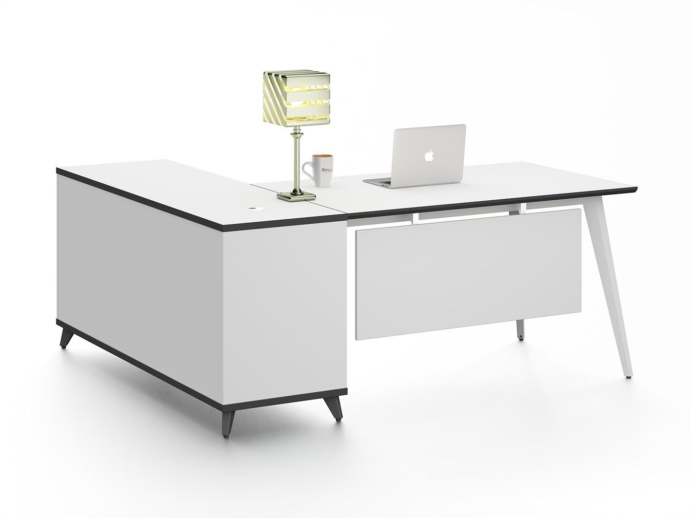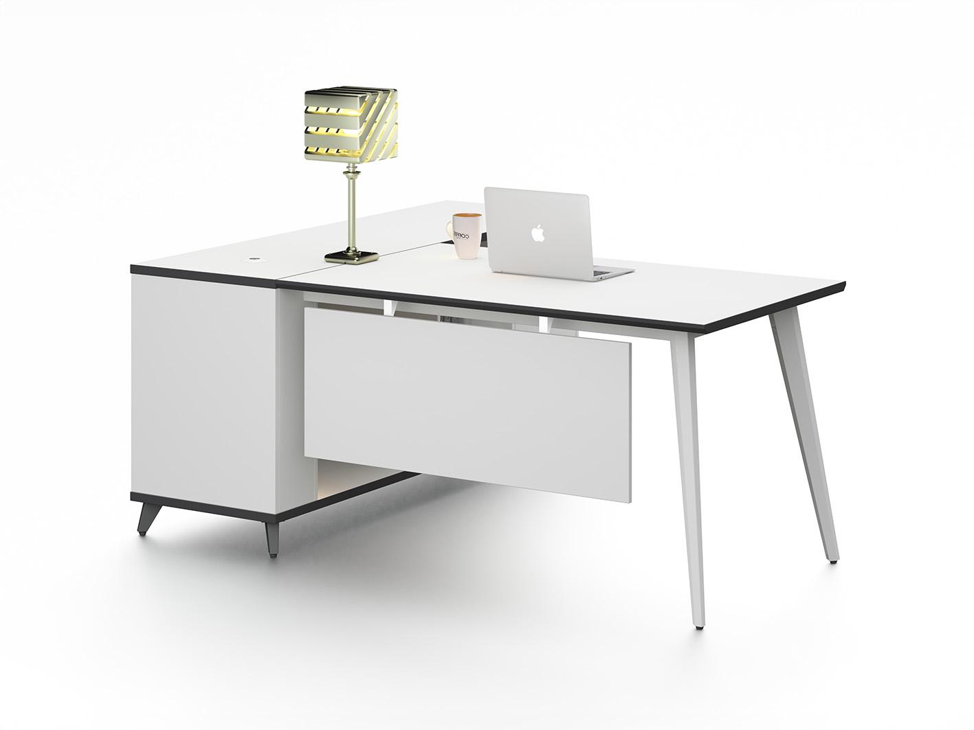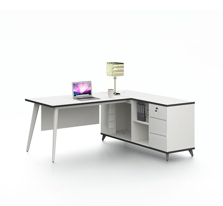 يتميز المكتب بأرفف جانبية وخزانة متعددة الاستخدامات، مما يجعله مثاليًا لتخزين الملفات، الكتب، واللوازم المكتبية بشكل منظم وسهل الوصول.