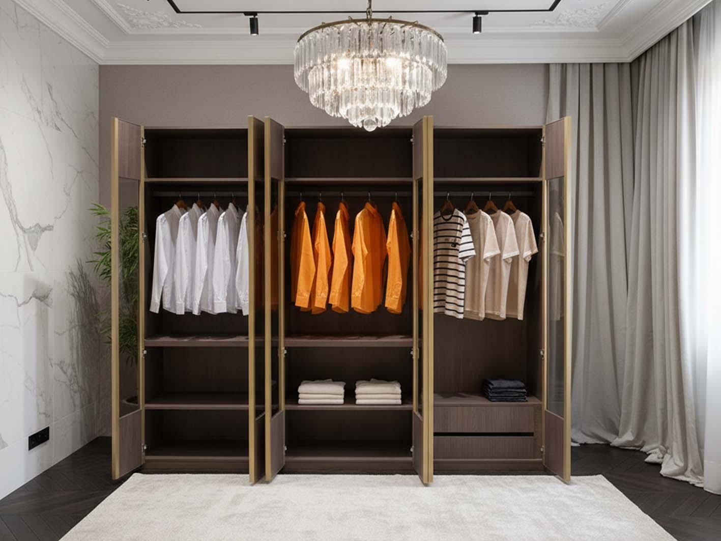 مساحات داخلية مرنة تساعدك في تنظيم الملابس والاكسسوارات بسهولة.