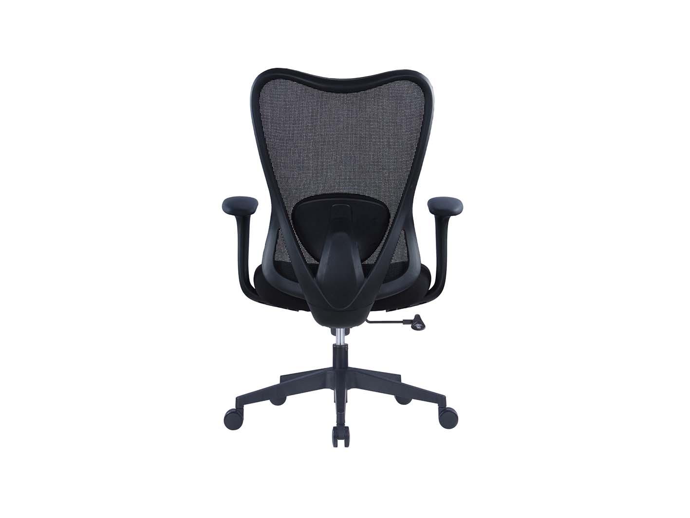 الظهر مصنوع من بولي بروبيلين أسود مع شبكة تهوية ودعامة قطنية قابلة للتعديل. هذا التصميم يحافظ على برودة الجسم ويمنع تراكم الحرارة أثناء العمل الطويل.