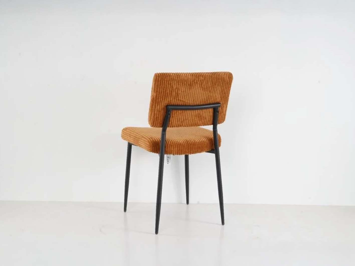 تغطي خامة القماش المخملي الناعم المقعد ومسند الظهر، وتتميز بنقشة طولية أنيقة تبرز جمال اللون وتمنح ملمسًا مريحًا عند الاستخدام. يوفّر الحشو الداخلي دعماً مريحاً للظهر والفخذين، مما يجعل مثاليًا للجلسات الطويلة سواء على طاولة الطعام أو في ركن العمل أو القراءة.