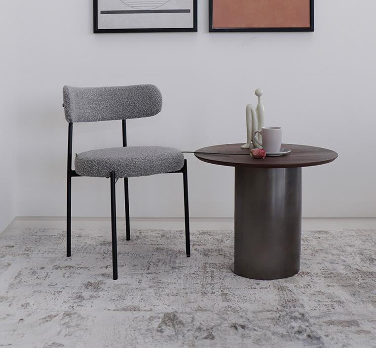 • يتميز كرسي إينيس بتنجيده الفاخر من قماش بوكليه، الذي يضيف لمسة من الأناقة والدفء إلى أي مساحة داخلية. قماش بوكليه المعروف بنسيجه الفريد والناعم يعزز تجربة الجلوس بفضل ملمسه المريح.