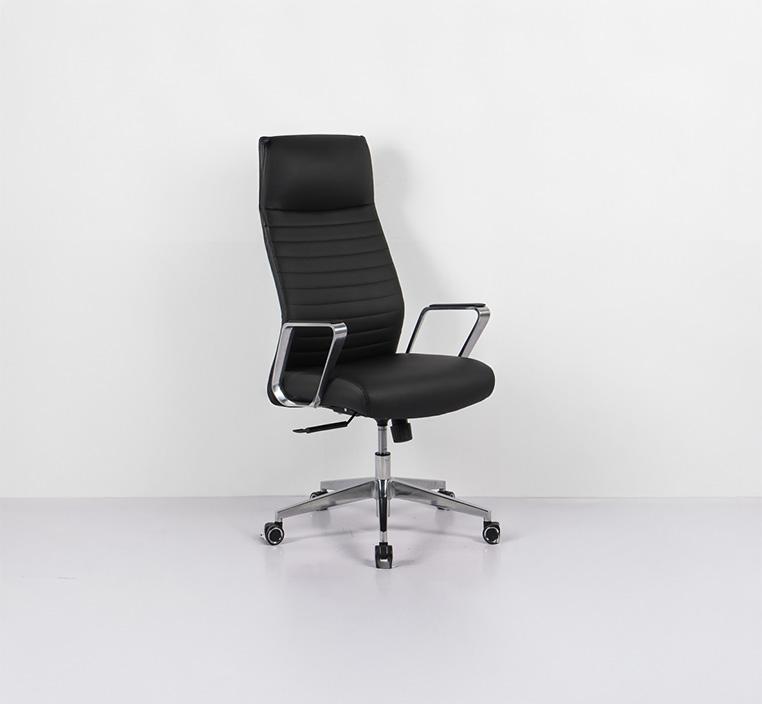 الكرسي مزود بظهر مرتفع مصنوع من هيكل فولاذي قوي مع حشوة فوم مصبوب عالية الكثافة، مغطى بجلد صناعي فاخر يمنحك دعماً متيناً مع لمسة فاخرة. التصميم يضمن راحة للظهر والعمود الفقري حتى مع الجلوس لفترات طويلة.