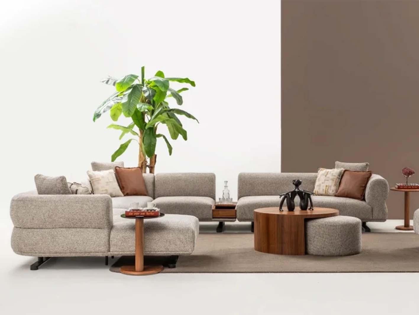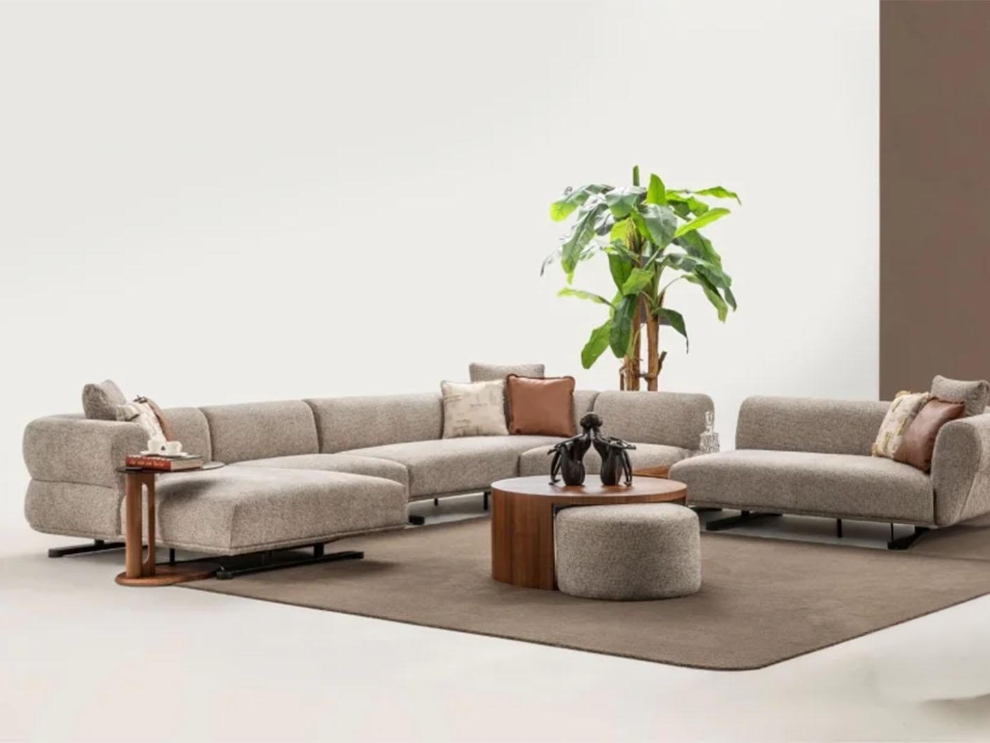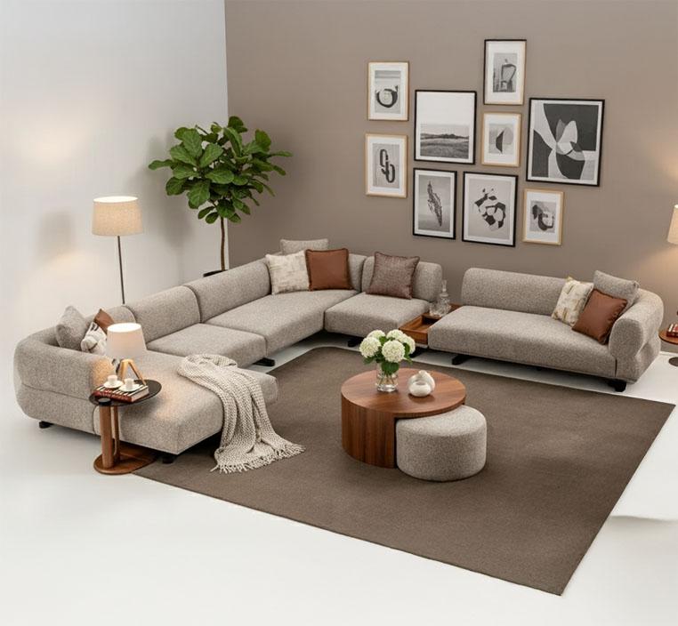 يتميز الكنب بإمكانية ترتيب أجزائه بعدة طرق لتتناسب مع ذوقك واحتياجاتك، سواء أردتِ زاوية دافئة تجمع أفراد العائلة أو تكوين أنيق على شكل U يمنح الغرفة لمسة من الفخامة العملية.