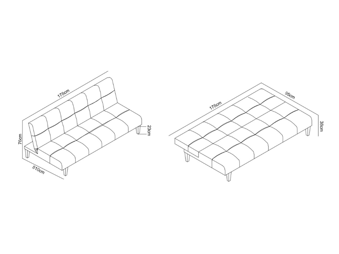 وضع الكنبة: 178 سم طول × 81 سم عرض × 76 سم ارتفاع.