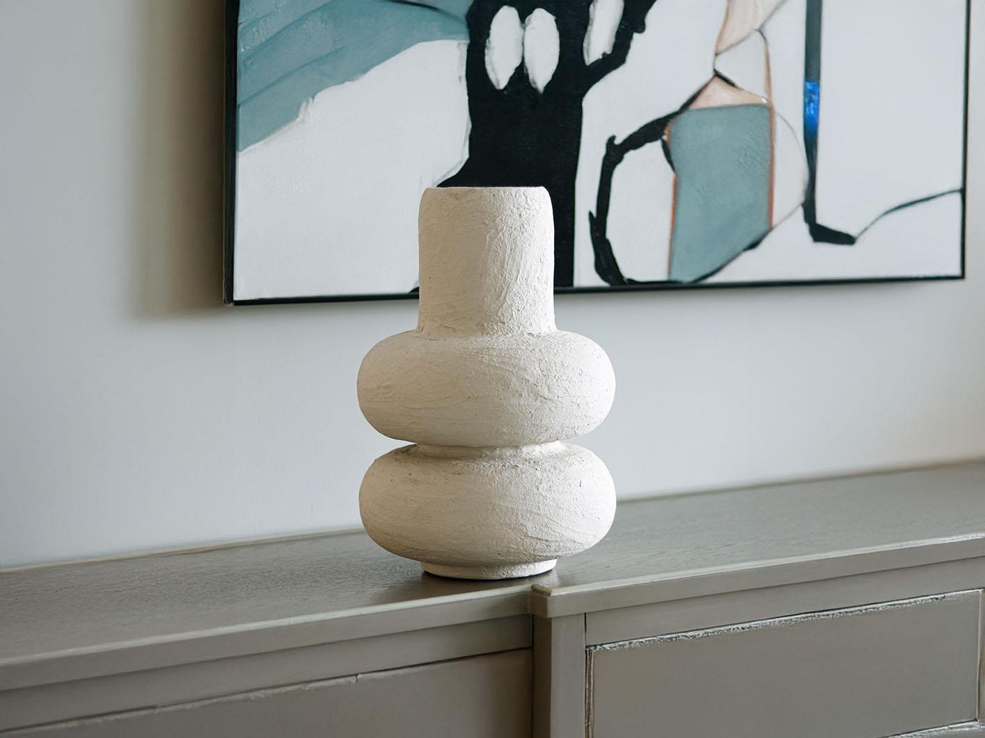 أضف لمسة من الأناقة الهادئة والأسلوب البوهيمي العصري إلى ديكور منزلك مع فازة الديكور السيراميك البوهيمي الفريدة بلونها البيج الطبيعي. تتميز بتصميمها العضوي الانسيابي وتفاصيلها الخشنة التي تضفي إحساسًا بالدفء والبساطة الراقية.فازة مثالية لعشاق الطراز البوهيمي والمينيمالي، يمكن استخدامها كقطعة ديكور قائمة بذاتها أو لتزيينها بفروع خضراء طبيعية أو صناعية.