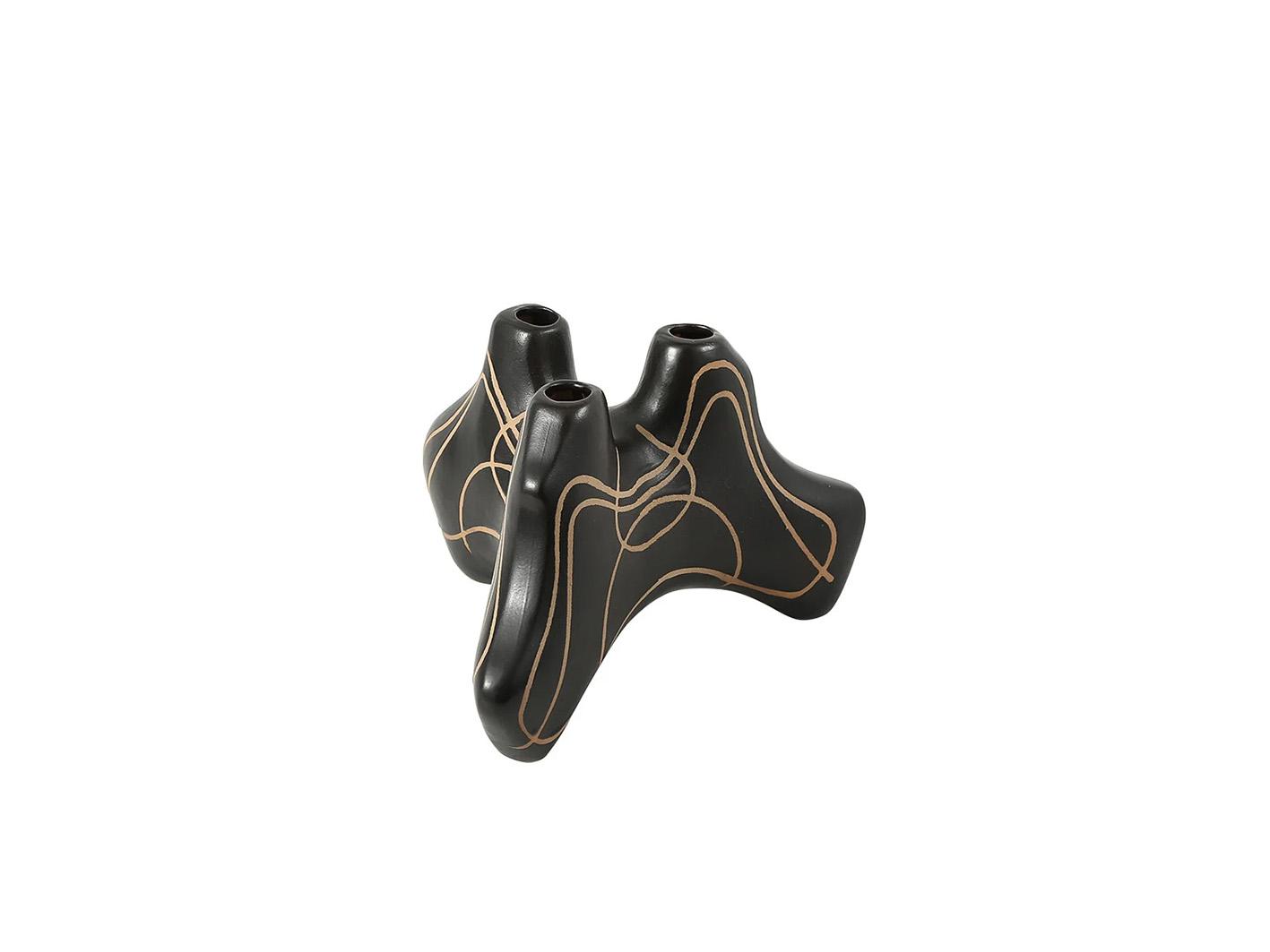تضفي هذه الفازة السوداء الأنيقة جمالية استثنائية على أي مساحة داخلية بفضل تصميمها العصري والفريد. تتميز بتفاصيلها الدقيقة والخطوط الذهبية التي تزينها، مما يجعلها قطعة فنية رائعة تناسب أي ديكور منزلي، سواء كان كلاسيكيا أو حديثا.يمكن استخدامها كقطعة ديكور منفردة أو مع أزهار جافة أو اصطناعية.