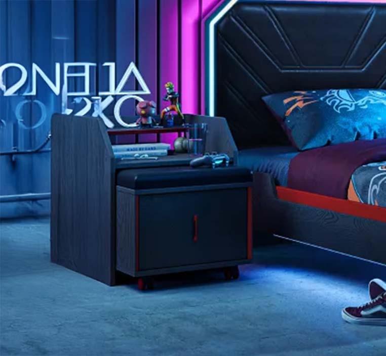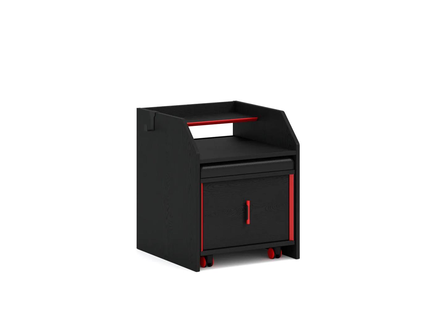 طاولة جانبية عصرية تجمع بين التصميم الفريد والوظائف المتعددة، لتكون الخيار المثالي بجانب سريرك. كمدينو خشبي فيونكس مصمم بعناية باللون الأسود الجذاب مع لمسات حمراء تضيف طابعًا عصريًا وجريئًا إلى غرفتك.