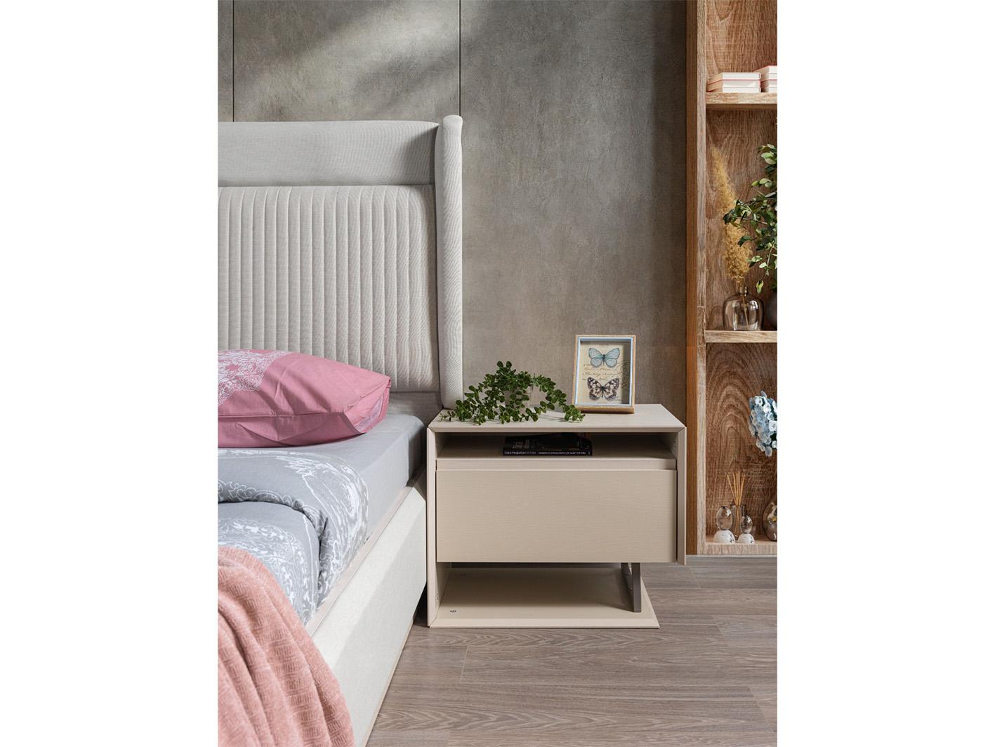 يشمل الطقم سرير مزدوج مريح مزود بلوح رأسي منجد بتنجيد ناعم يمنحك دعمًا وراحة مثالية أثناء الاسترخاء أو القراءة. يتميّز السرير أيضًا بوجود مساحة سرير مريحة تسمح لك بالاستلقاء بحرية، مع وحدة تخزين داخلية تساعدك على تنظيم أغراضك الشخصية بكفاءة، دون التأثير على شكل الغرفة العام.