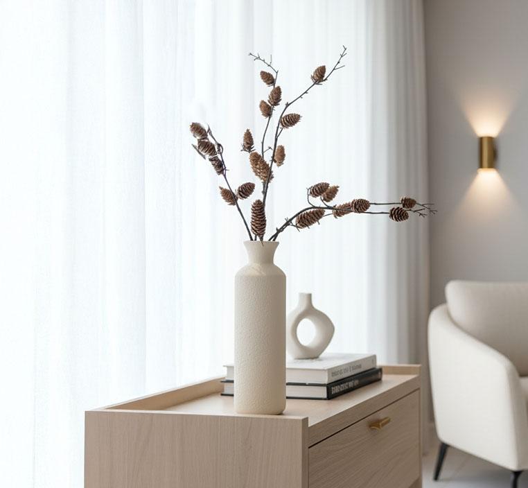 هذا الغصن ليس مجرد ديكور، بل هو أيضًا وسيلة لإبراز الذوق الرفيع في اختيار التفاصيل الصغيرة التي تصنع فرقًا كبيرًا في التصميم الداخلي. يمكن دمجه بسهولة مع قطع ديكور أخرى، مثل الشموع أو المزهريات، ليمنح المساحة شعورًا بالدفء والحيوية. كما أنه خيار مثالي للهدايا، حيث يمثل لمسة طبيعية أنيقة لأي مناسبة، دون الحاجة للقلق بشأن صيانته.
