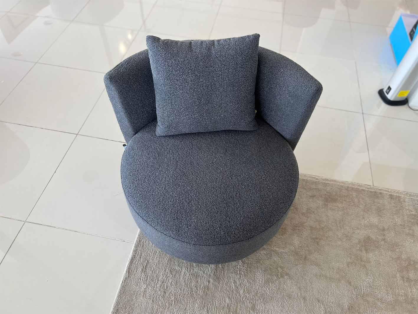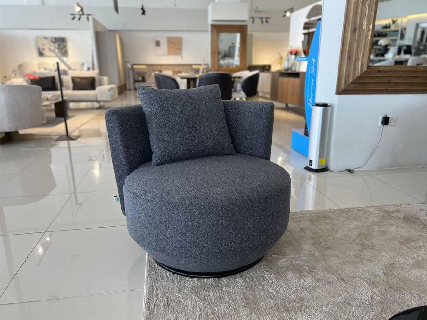 كنب فردي دوار، كنب رمادي، كنب عصري، كنب مريح، قماش بوكلية، كنب دوار، كرسي مفرد . كرسي دوار