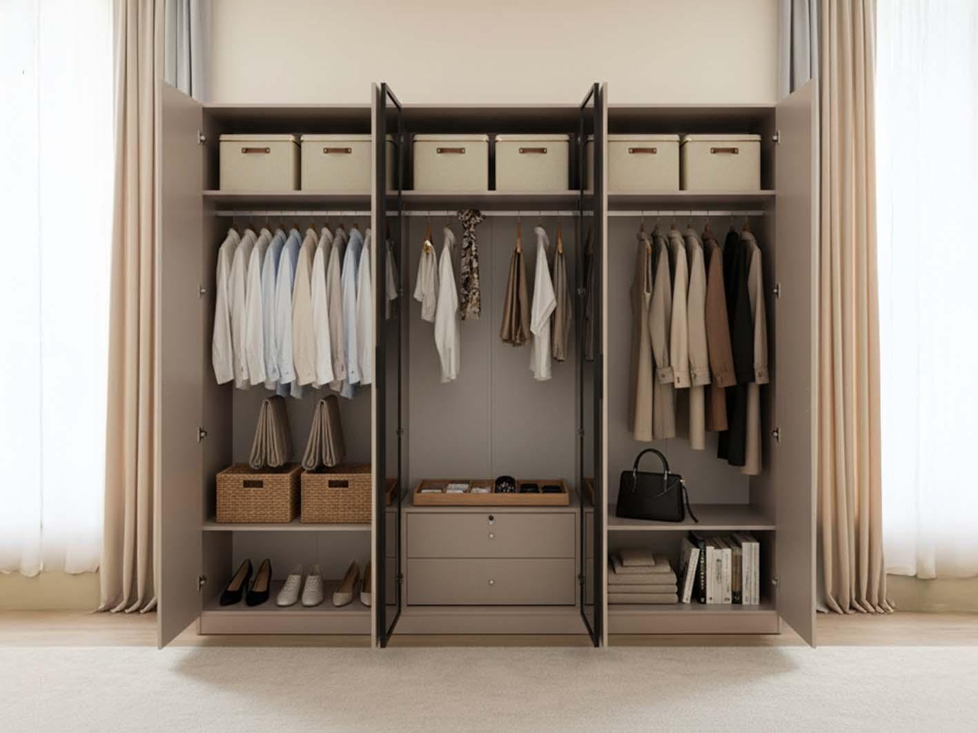 تم تصميم المساحات الداخلية لدولاب هزال بعناية فائقة لتمنحك أقصى درجات التنظيم: