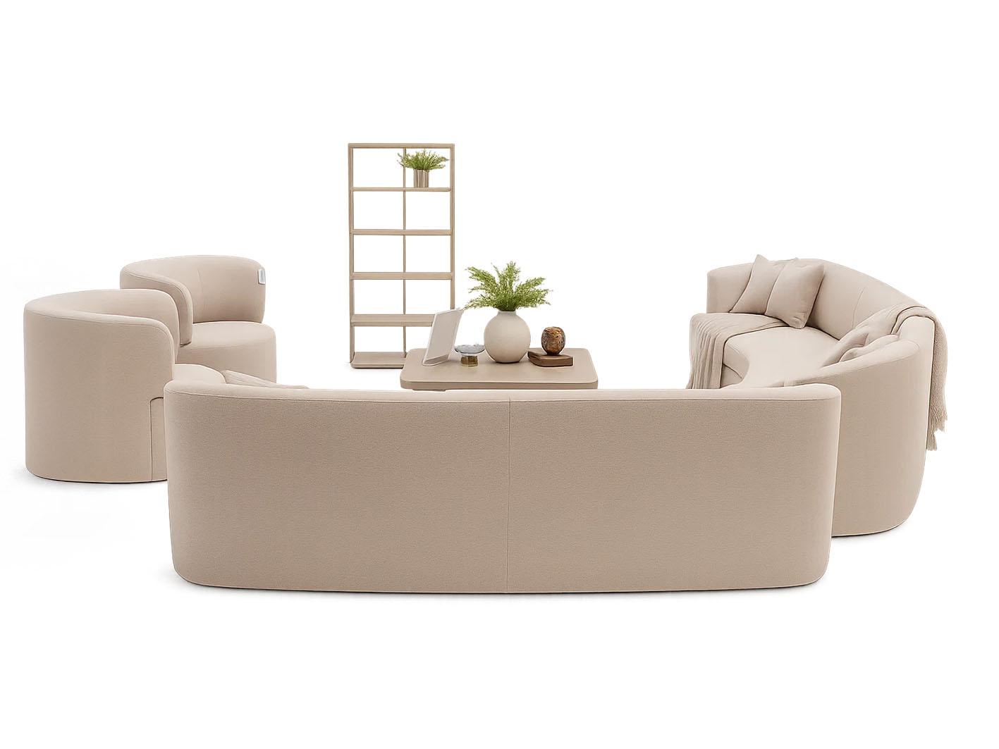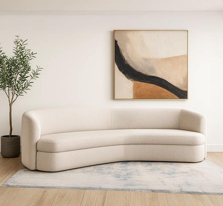 يتميز الكنب بخطوطه الانسيابية التي تمنح المكان شعورًا بالهدوء والتناغم. التصميم المدروس يجمع بين البساطة والأناقة في آنٍ واحد، ما يجعل الكنب قطعة مركزية تضيف لمسة راقية لديكورك. النهايات المنحنية والتفاصيل الدقيقة تعزز من جمالية الشكل العام.