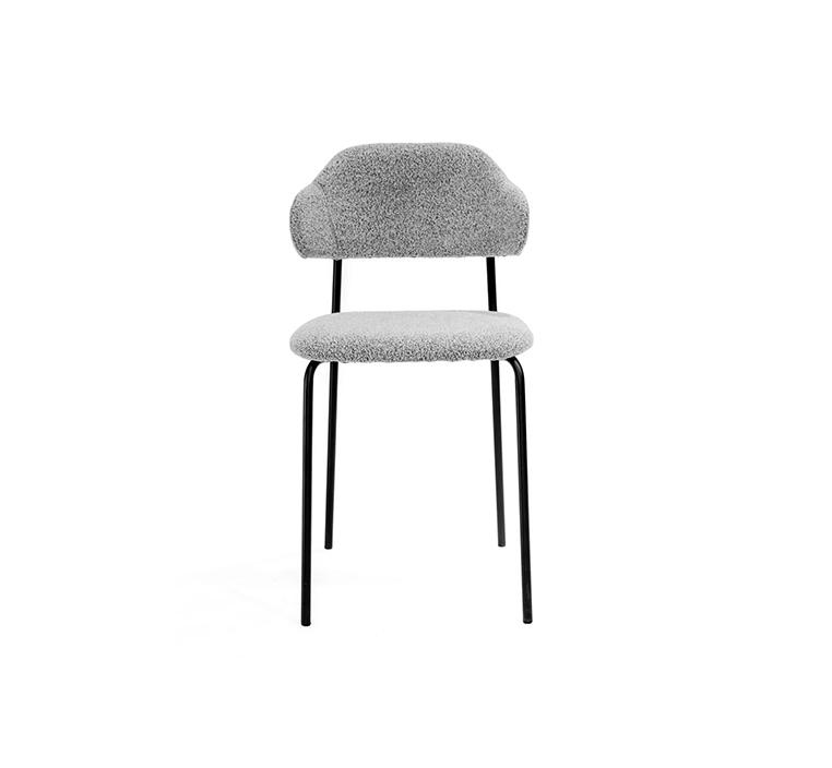 كرسي طاولة طعام أنيق بخامة بوكليه وأرجل معدنية سوداء – لمسة راقية لكل ركن