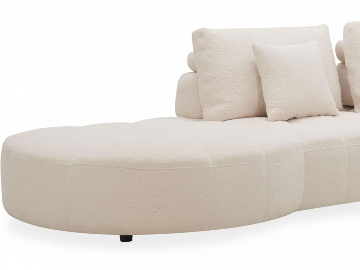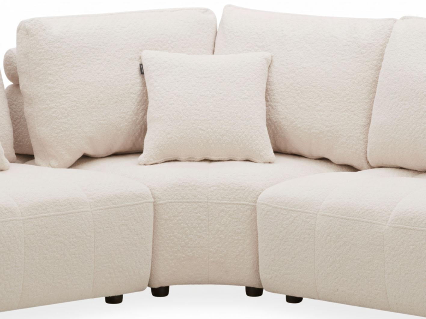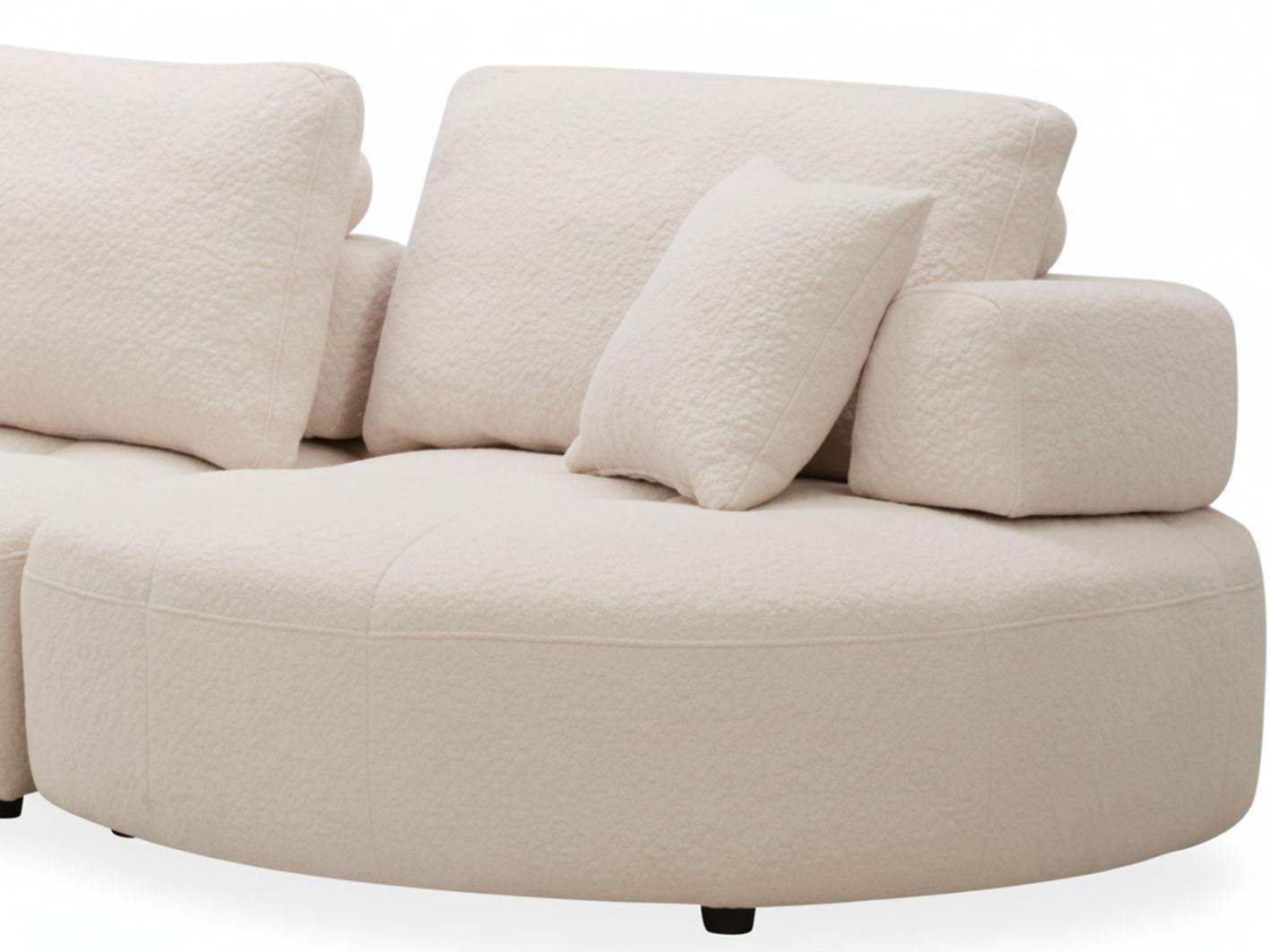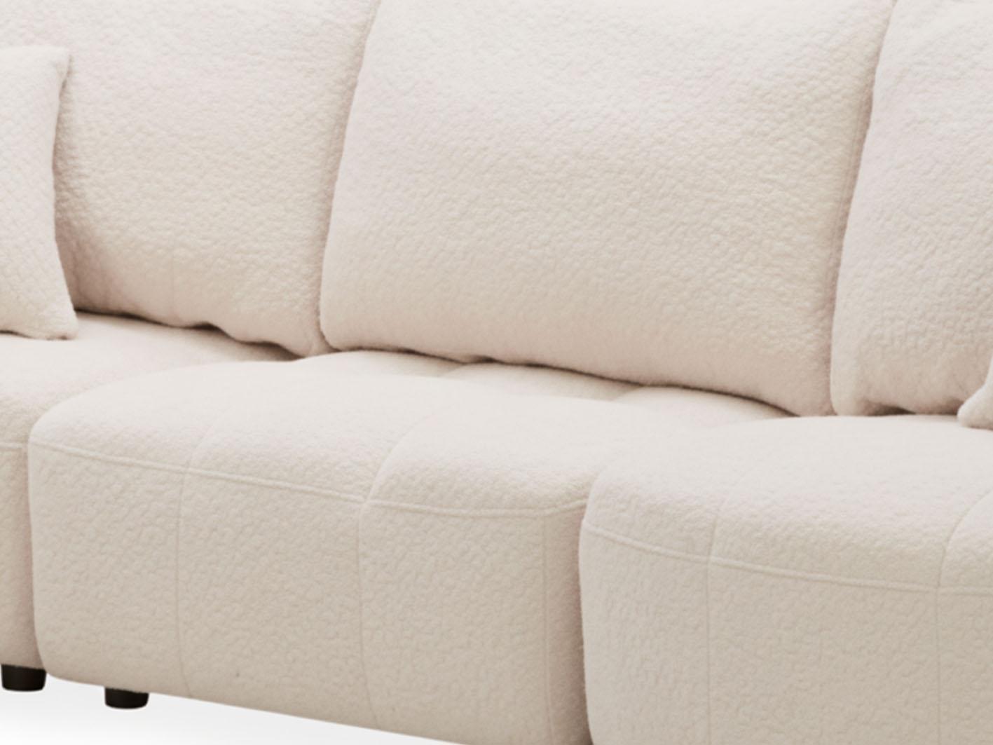تم تنجيد الكنب بخامة بوكلية فاخرة ناعمة الملمس وذات جودة عالية، تضيف إحساساً مميزاً بالرفاهية. كما أنه مزود بوسائد ظهر مريحة محشوة بحشو إسفنجي عالي الكثافة يوفر دعماً مثالياً للجسم ويمنح جلسات طويلة ممتعة ومريحة.