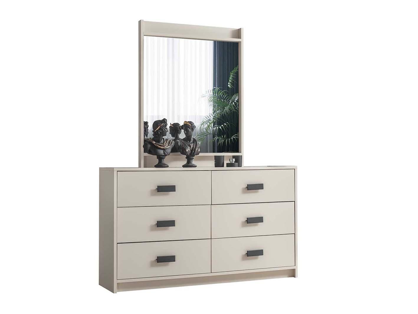 تم تصنيع طقم غرفة نوم "مومينتم" من خشب الميلامين عالي الجودة، المعروف بمتانته وقدرته على التحمل، مما يضمن لك استثماراً يدوم لسنوات طويلة. يتميز بلونه الكريمي الجذاب الذي يتناغم بسهولة مع مختلف أنماط الديكورات الداخلية، سواء كانت كلاسيكية أو عصرية.