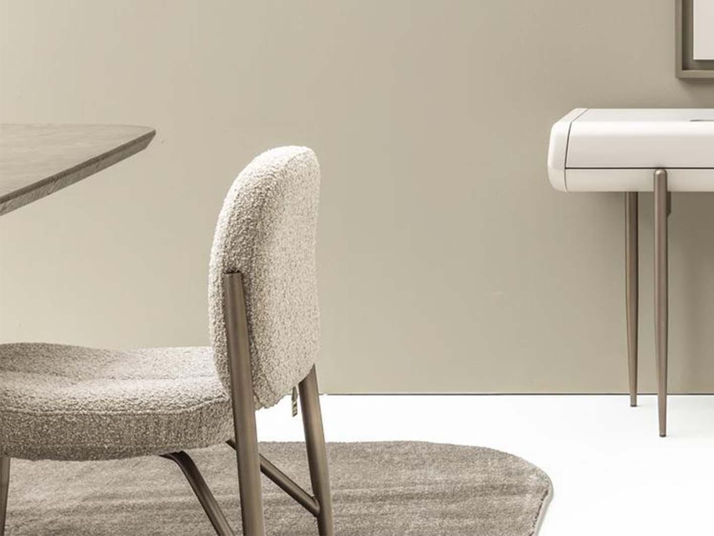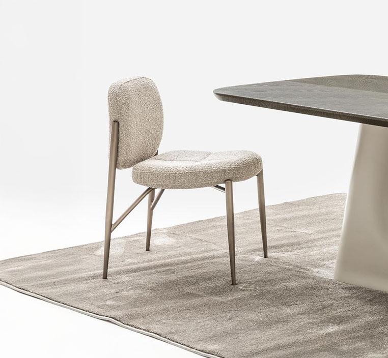 تم تصميم مقعد الكرسي بالكامل من الخشب المتين لضمان ثبات واستقرار ممتاز، بينما يغطيه قماش بوكلية ناعم ومريح يوفر تجربة جلوس ممتعة طوال الوقت. الأرجل المصنوعة من المعدن القوي تمنح الكرسي دعمًا إضافيًا ومتانة طويلة الأمد، مع الحفاظ على تصميم عصري يتماشى مع مختلف أنماط الديكور.
