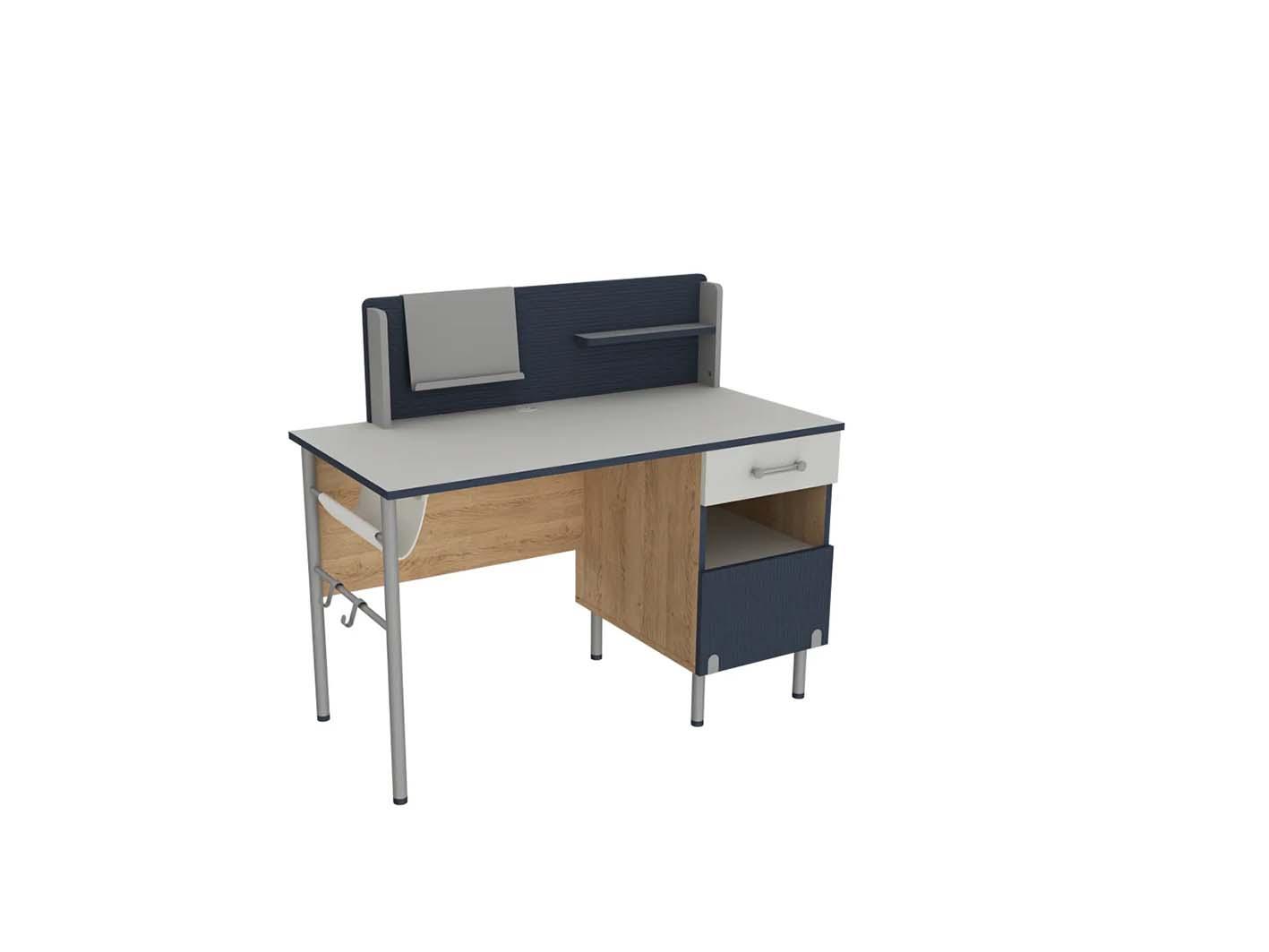 تم تصميم المكتب بعناية فائقة ليتوافق مع مختلف الاستخدامات، فهو مزود برفوف منظمة وواسعة تساعد على ترتيب الكتب والملحقات بسهولة، بينما توفر الأدراج الكبيرة مساحة إضافية لتخزين الأدوات المكتبية أو المستلزمات الشخصية. بالإضافة إلى ذلك، يحتوي المكتب على مشبك متحرك للتابلت معدني مطلي بالكهرباء الساكنة لتسهيل استخدام الأجهزة الإلكترونية بطريقة آمنة ومنظمة.