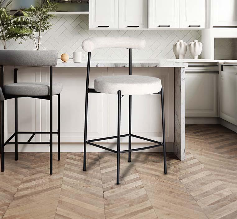 كرسي بار نيو لينا مصنوع بعناية فائقة من مواد ذات جودة عالية لضمان المتانة والطول العمر. الأرجل مصنوعة من المعدن الصلب، مما يمنح الكرسي ثباتًا استثنائيًا وقدرة على التحمل، بينما تعزز لمسة المعدن من جمالية التصميم العصري.