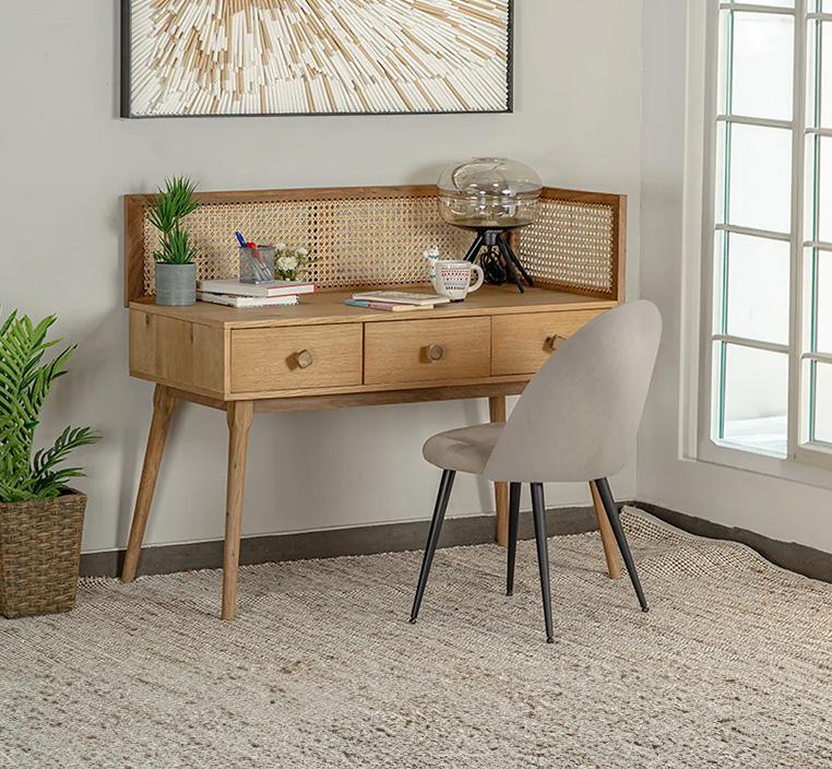 تم تصميم الطاولة لتخدمك بمرونة سواء كنت طالبًا تبحث عن طاولة مذاكرة عملية أو محترفًا يعمل من المنزل ويحتاج إلى طاولة مكتب أنيقة. توفر مكتبة دراسة مدمجة ومساحات تخزين ذكية لترتيب الكتب، الأوراق، والأدوات، مما يضمن بيئة عمل منظمة ومحفزة.