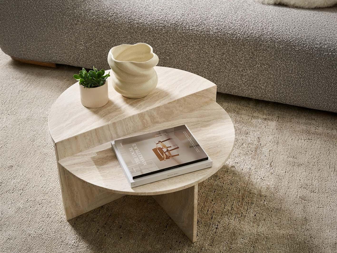 ريفولي طاولة قهوة ترافرتين بيج وودي