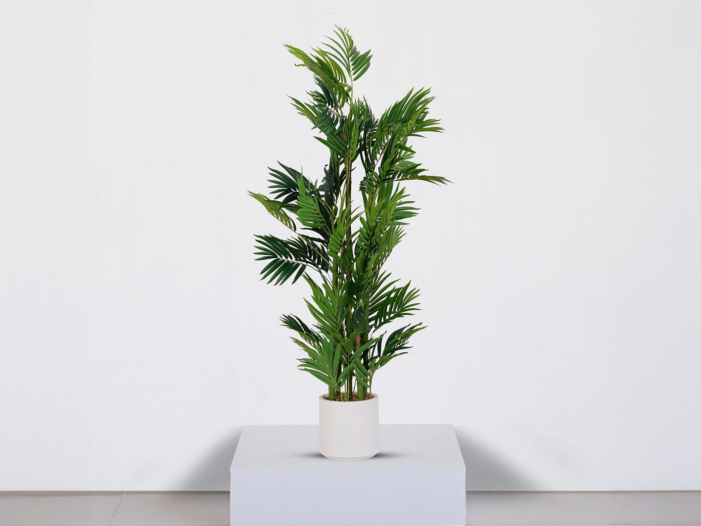 أضف لمسة استوائية إلى منزلك مع شجرة ديكور النخل بارتفاع 155 سم. تتميز أوراقها الكثيفة واللينة بجمال طبيعي يجذب الأنظار. مثالية لتزيين الزوايا الفارغة أو كمركز جذب في أي غرفة. سهلة العناية، تناسب جميع مستويات العناية بالنباتات. اجعل شجرة النخل جزءًا من تصميمك الداخلي واستمتع بأجواء من الانتعاش والحيوية!