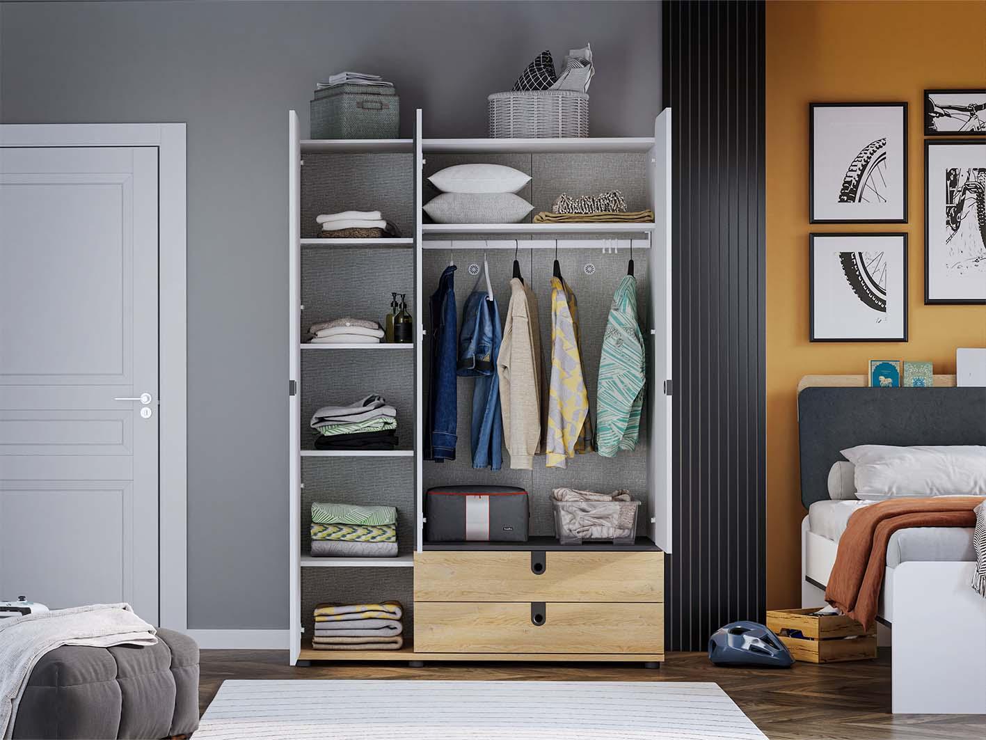 يسار: يحتوي على 5 أرفف لتخزين الملابس المطوية أو الأغراض المختلفة.