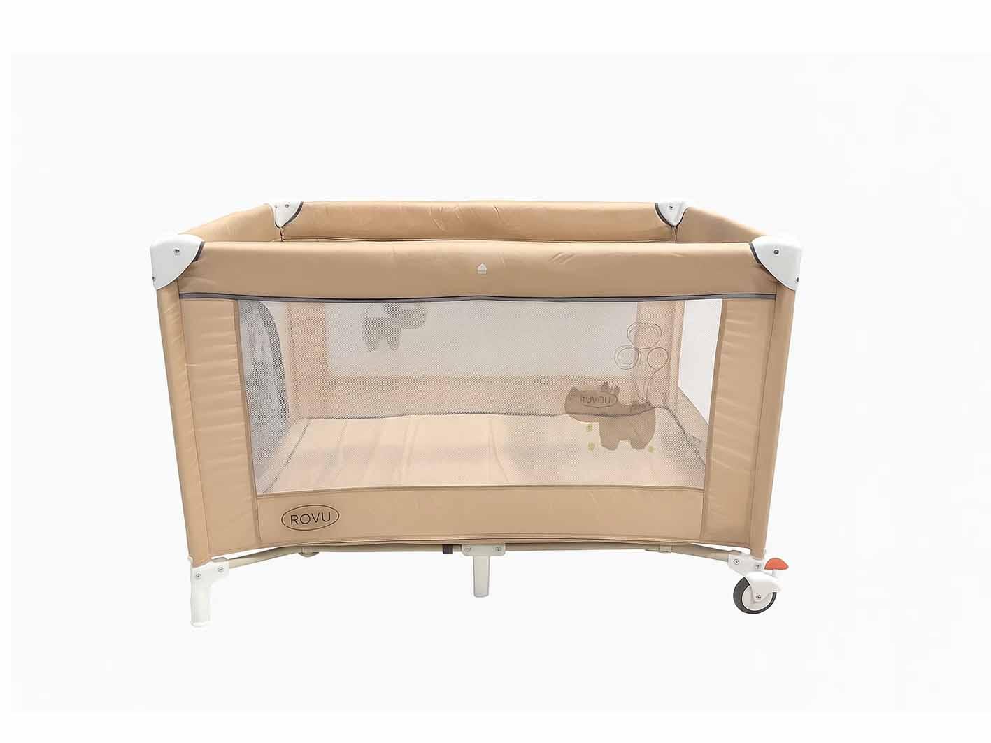 تم تصميم السرير باستخدام قماش بوليستر ناعم وآمن بلمسات لونية دافئة ومريحة تكمل أي ديكور منزلي، ليصبح جزءاً أنيقاً من غرفتك أو غرفة طفلك. كما أن النسيج الشبكي الجانبي يضيف ميزة تهوية مثالية مع توفير رؤية واضحة للأهل والطفل على حد سواء، ما يمنح شعوراً بالراحة والطمأنينة.