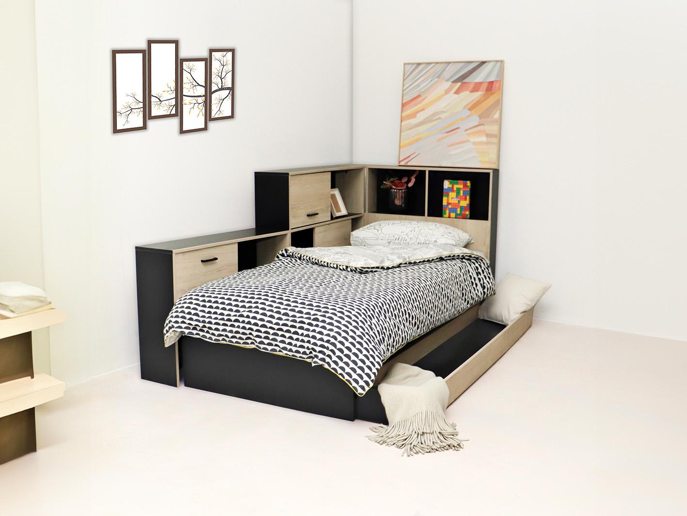 1. تصميم ذكي للتخزين يتميز سرير إروان بتصميمه الذكي الذي يتيح لك الاستفادة القصوى من المساحة المتاحة. يحتوي على العديد من الأدراج والوحدات التخزينية المدمجة في الهيكل، مما يجعله حلاً مثاليًا لتخزين الملابس، الأغطية، أو الأدوات الشخصية بشكل منظم وفي متناول اليد.