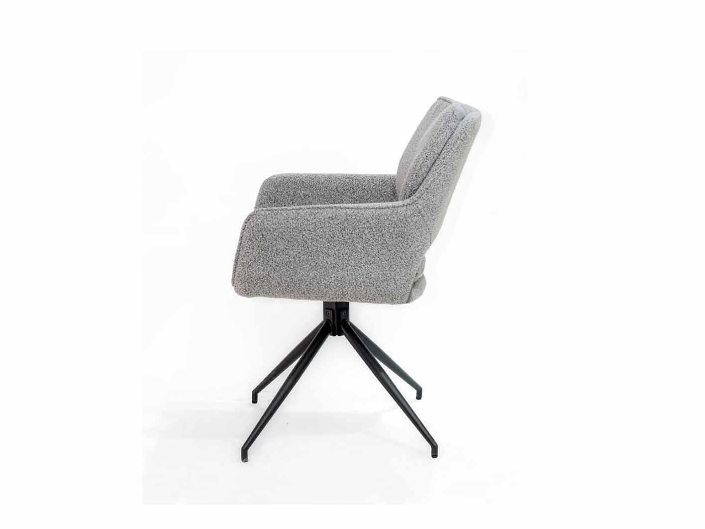سيلي كرسي طاولة طعام رمادي مغطى بقماش بوكليه ناعم بلون رمادي هادئ. هذه الخامة معروفة بملمسها الفاخر ومتانتها العالية، ما يجعل الكرسي مثاليًا للاستخدام اليومي. اللون الرمادي المحايد ينسجم بسهولة مع أنماط الديكور المتنوعة، من العصري إلى الكلاسيكي.