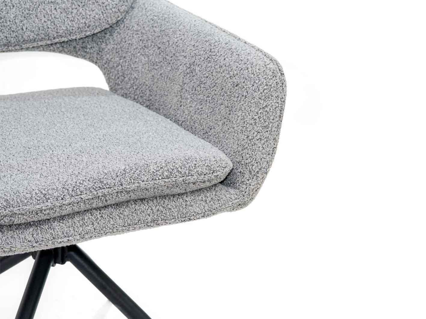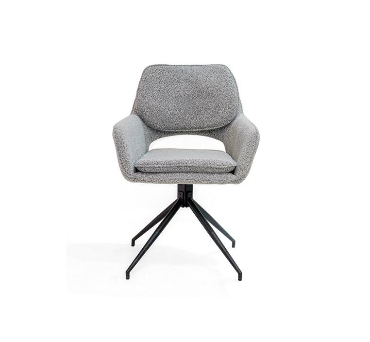 كرسي طاولة طعام، كرسي مكتب، قماش بوكليه، قاعدة معدنية سوداء، تصميم عصري، كرسي رمادي، كرسي مريح، أثاث مودرن، كرسي استقبال، كرسي ركن قهوة.