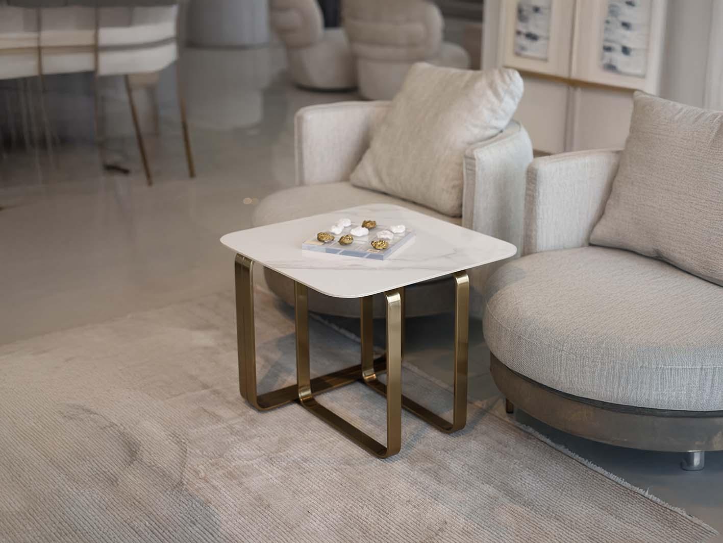 تمتاز الطاولة بسطح مصنوع من البورسلان الفاخر، الذي يجمع بين المظهر الجذاب والمتانة العالية، مما يجعلها مقاومة للخدوش والتلف بمرور الزمن. كما أن قاعدتها المصنوعة من الحديد المقاوم للصدأ تضفي لمسة فاخرة باللون الذهبي أو الأسود، لتتكامل مع مختلف أنماط الديكور العصري والكلاسيكي على حد سواء.