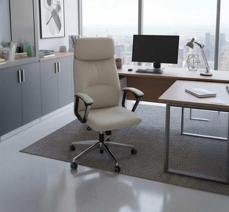 ارتقِ بتجربة الجلوس في مكتبك مع كرسي مكتب جلد بيج ألفا بمسند الظهر العالي، المصمم للمهنيين والمديرين التنفيذيين الذين يقدرون الراحة والفخامة. يجمع الكرسي بين التصميم العصري والأداء العملي، ليكون خيارًا مثاليًا لتحقيق أقصى درجات الراحة أثناء ساعات العمل الطويلة.