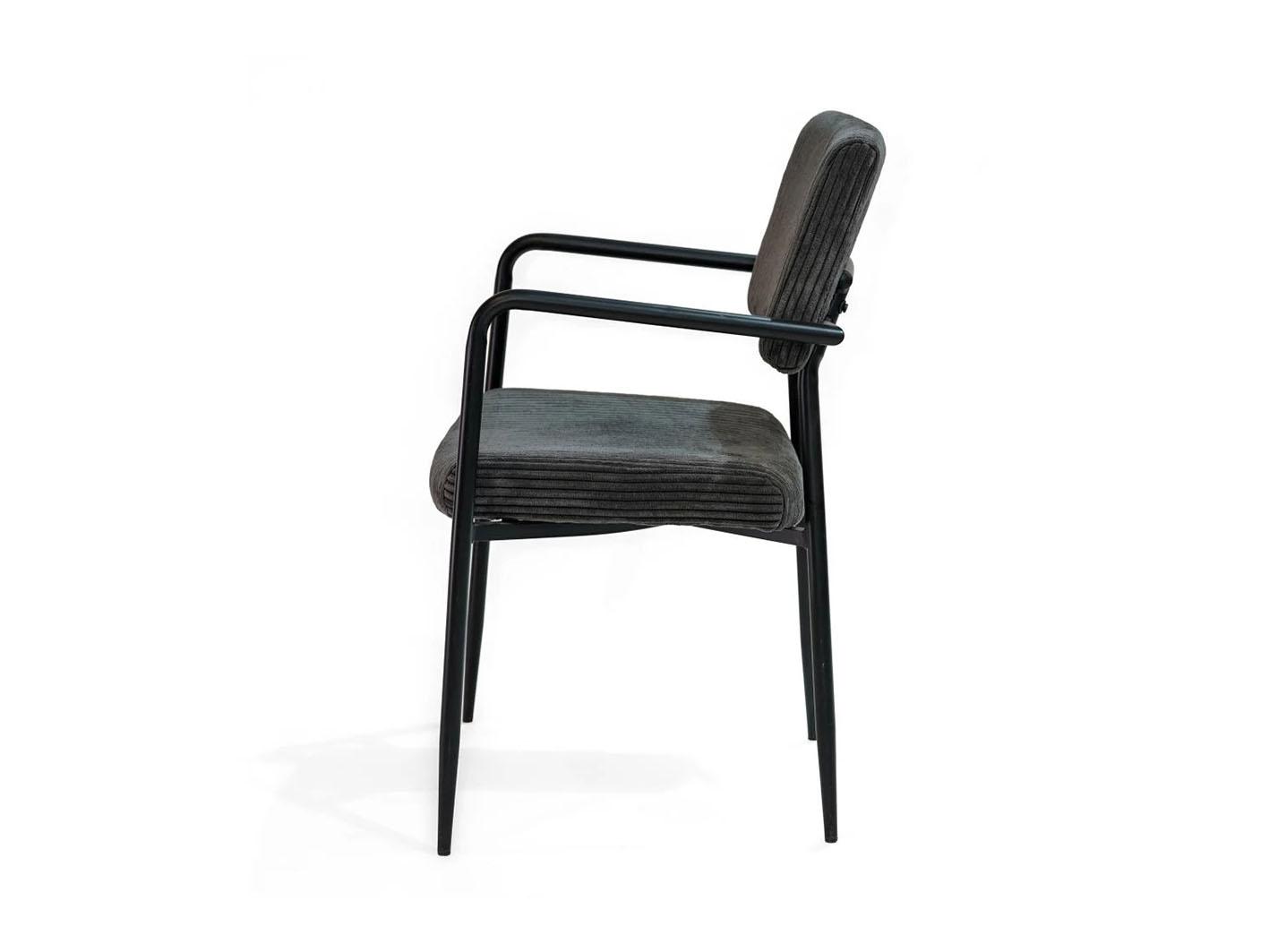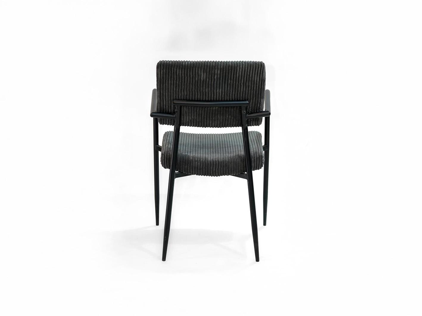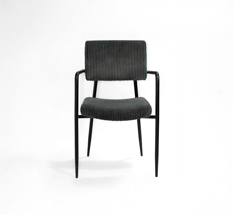 الإطار المعدني باللون الأسود يمنح الكرسي ثباتًا ومتانة، كما تضيف الأذرع الرفيعة تصميمًا عمليًا دون أن تثقل الشكل العام. الكرسي خفيف الوزن وسهل الحركة، مما يتيح تنقله بين الغرف حسب الحاجة دون عناء.