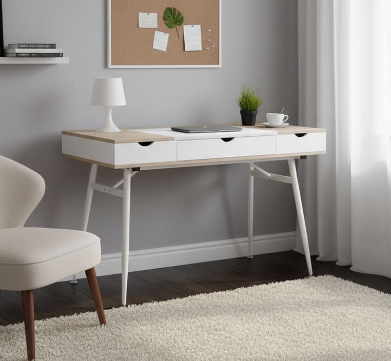 1. سطح عمل واسع: يمنحك مساحة كبيرة لوضع الكمبيوتر، الكتب، والمستلزمات المكتبية دون ازدحام. 2. خامات خشبية متينة: يضمن المكتب استقرارًا عاليًا ومتانة تدوم طويلًا مع لمسة طبيعية دافئة. 3. لمسة نهائية مقاومة للتآكل: طبقة الميلامين تحمي السطح من الخدوش والانسكابات اليومية. 4. إطار فولاذي قوي: يمنح المكتب ثباتًا متينًا وهيكلًا يدوم طويلاً. 5. درج تخزين أنيق: يحتوي على درج واحد يسهل تنظيم الأدوات المكتبية الصغيرة ويحافظ على ترتيب المساحة. 6. مزيج ألوان مريح: يجمع بين لون البلوط العلوي الفاتح والأبيض النقي ليمنح الغرفة طابعًا أنيقًا ومتوازنًا. 7. تصميم بدون مقابض: يضفي مظهرًا نظيفًا وبسيطًا يناسب الطابع العصري. 8. مرونة في الاستخدام: مثالي للدراسة، العمل المنزلي، أو كزاوية كتابة أنيقة. 9. قيمة عالية مقابل السعر: يقدم جودة ممتازة ومتانة طويلة الأمد بسعر معقول يناسب الجميع.