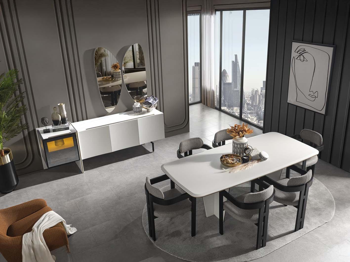 استمتع بأجواء فاخرة وأنيقة في كل وجبة مع طاولة طعام 8 أشخاص بادوفا المصممة بعناية لتناسب احتياجاتك اليومية ومناسباتك الخاصة. تجمع الطاولة بين العملية والجمال في تصميم عصري يضفي لمسة من الرقي على غرفة الطعام لديك.