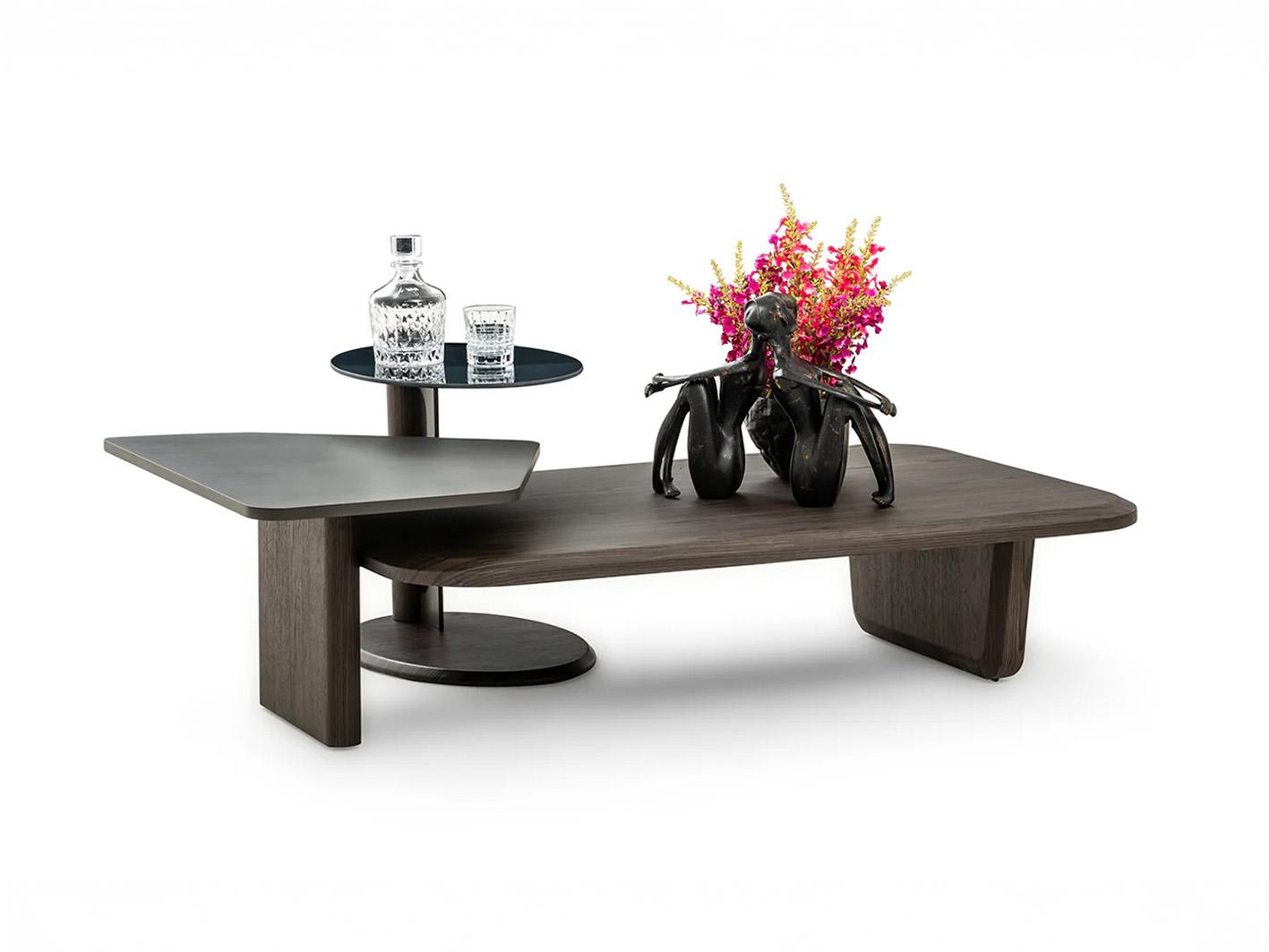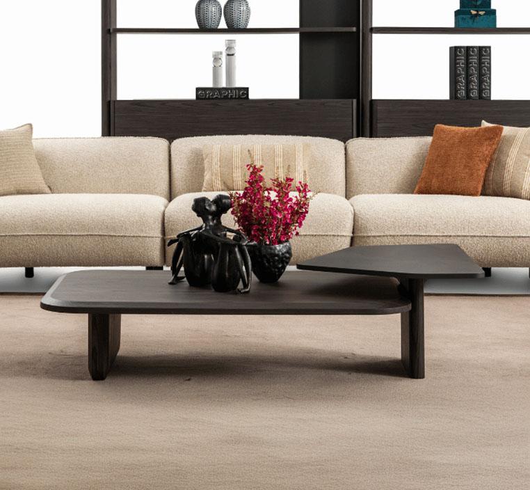 خطوط الطاولة الأنيقة والطبقات المتنوعة تجعلها قطعة محورية في غرفة المعيشة، حيث يمكن للزوار ملاحظة الأناقة والفن في تصميمها.