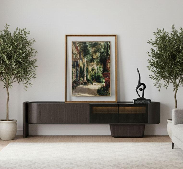 مزودة بأربعة أبواب واسعة، تتيح لك تنظيم الأجهزة، الكتب، أو الملحقات الخاصة بالترفيه بطريقة مرتبة، مع الحفاظ على جمالية التصميم الخارجي.