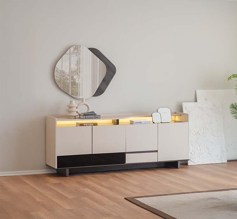 يعتبر كونسول بيلا مع مرآة الخيار المثالي للأشخاص الذين يبحثون عن دمج الأناقة مع العملية في منازلهم. هذه القطعة تضيف لمسة من الفخامة والتميز، مما يجعلها خياراً مثالياً لإثراء أي ديكور داخلي.
