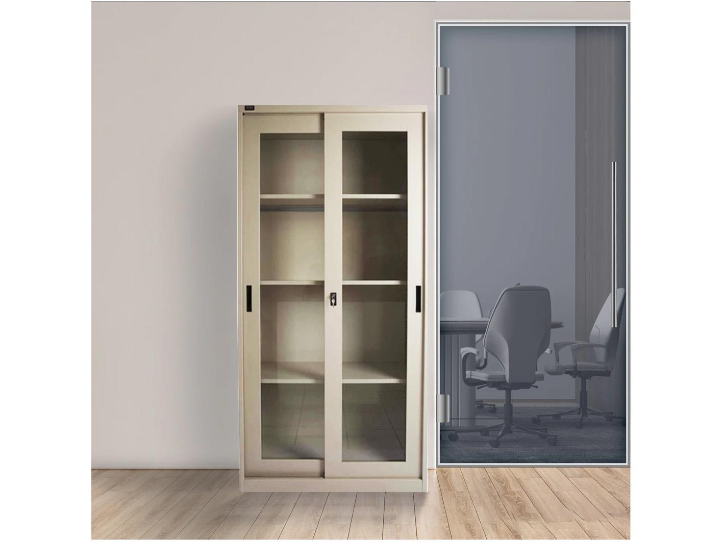 دولاب مكتبي سيكون إختيار متميز الى أثاث مكتبك بدولاب ذو البابين بواجهات زجاجية لتعطي شكل جمالي أكثر كما أنه يحتوي على العديد من الأرفف الداخلية ليكفي جميع إحتياجك .