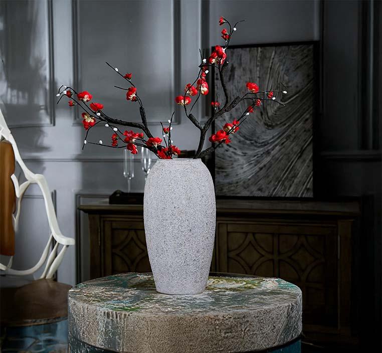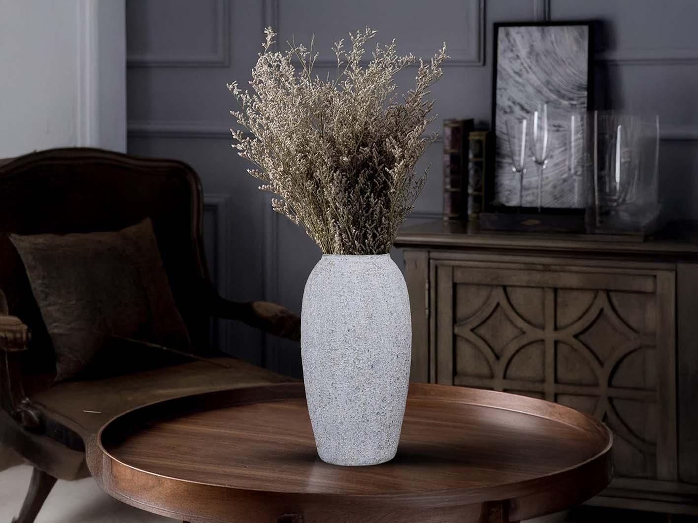 فازة زهور سيراميك فخمة وكبيرة لون رصاصي وودي