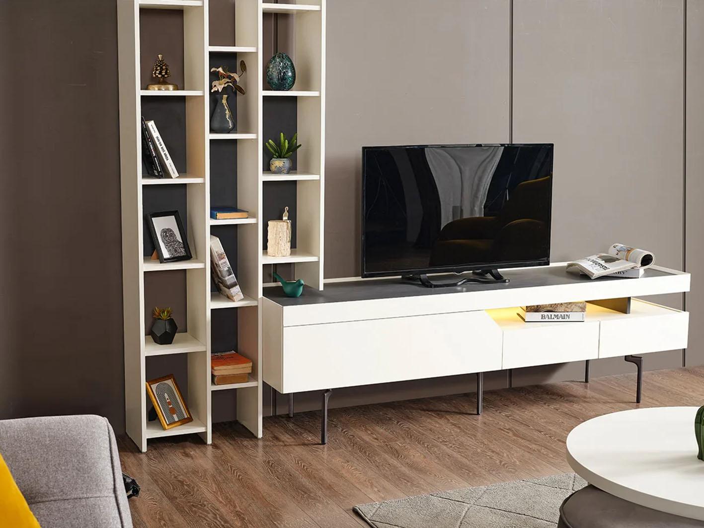 اختر طاولة التلفزيون فورزا، وتمتع بمزيج رائع من الأناقة والوظيفة في قطعة واحدة مثالية لغرفة معيشتك.