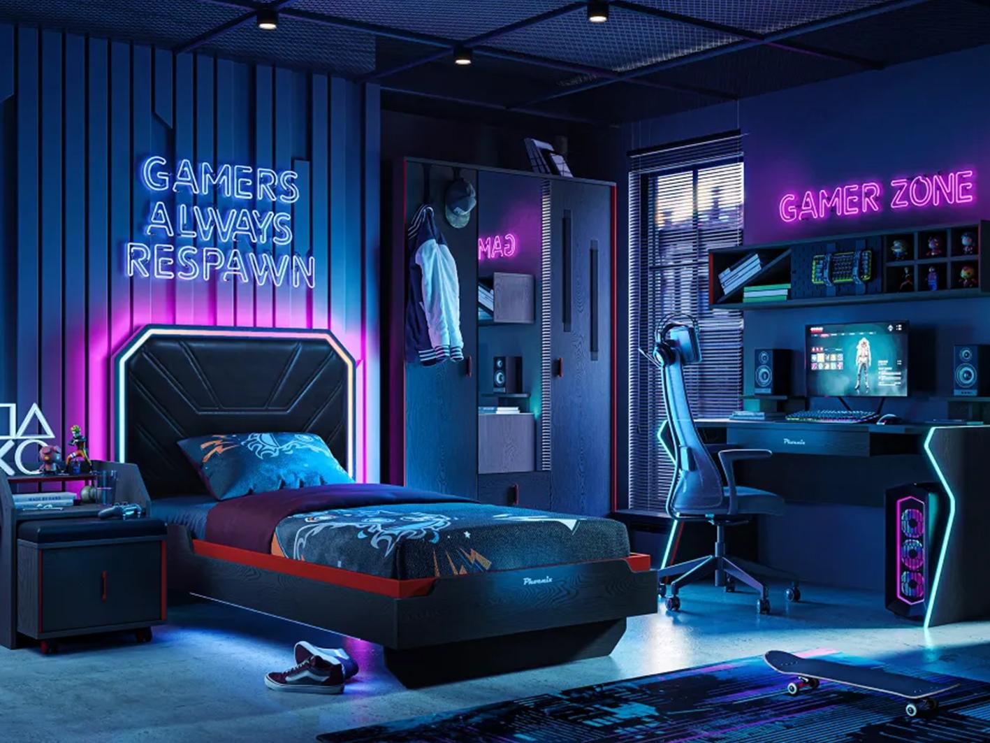 رف حائط أسود مع لمسات حمراء تضيف لمسة جمالية لمحيط اللعب الخاص بك.