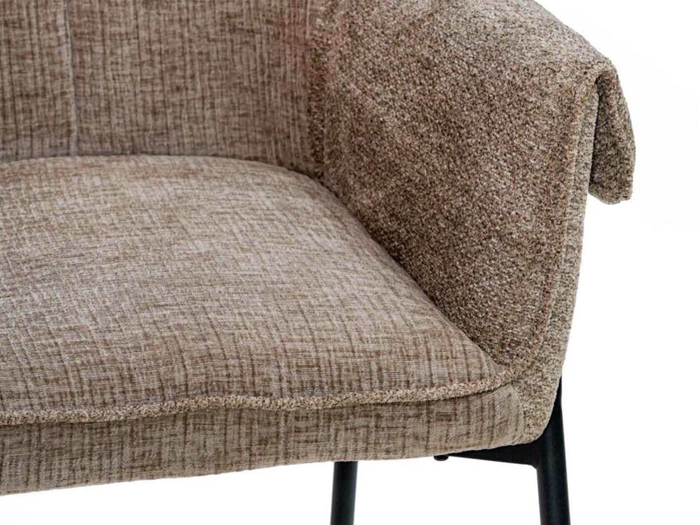 تم تنجيد الكرسي بقماش فاخر وناعم الملمس، يتميز بمظهره الغني وملمسه المريح الذي يلفت الأنظار منذ اللحظة الأولى. اللون البني يضيف عمقًا بصريًا وأناقة خالدة تتناغم بسهولة مع مختلف أنماط الديكور، من الكلاسيكي إلى العصري.
