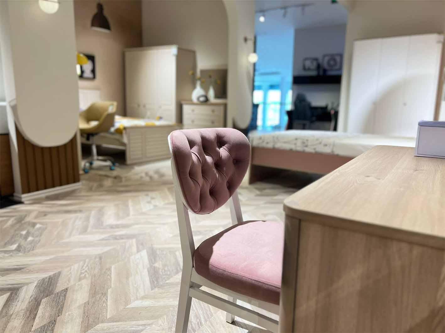 اللون: قاعدة وأرجل بيضاء – مقعد وظهر زهري