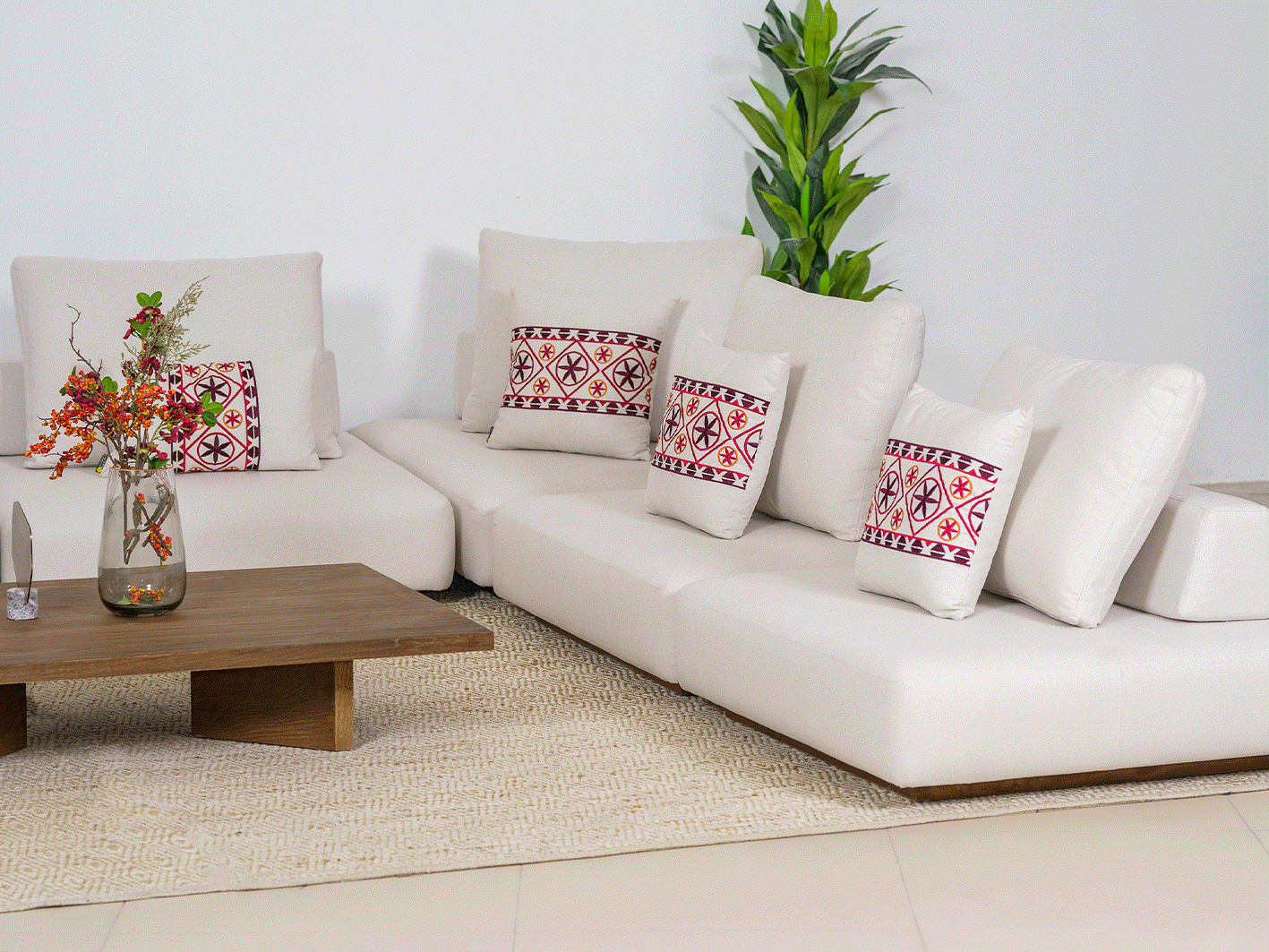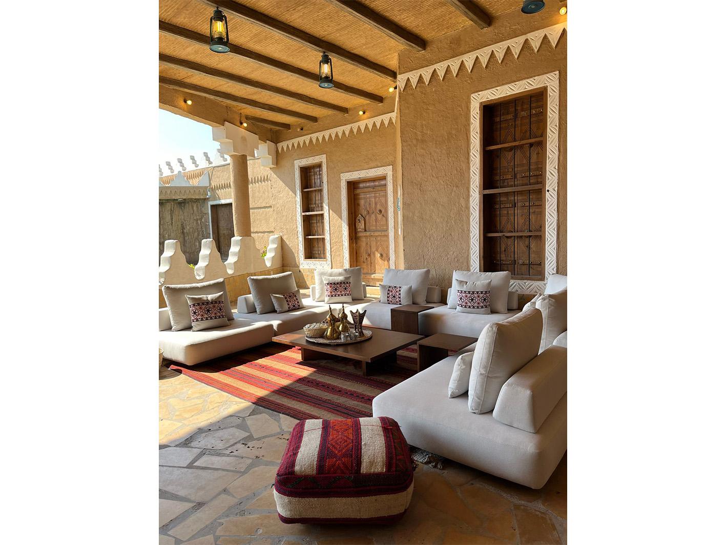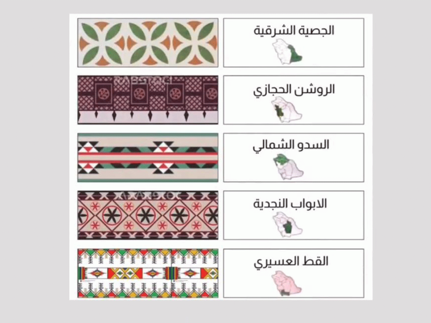 جلسة الأرضية السعودية هي خيار مميز لاجتماع العائلة ، هذه الجلسات تعتبر من وسائل تعزيز التواصل الاجتماعي والترابط الأسري في المجتمع السعودي ، تمثل أنماطاً من الزخارف والنقوش التقليدية التي ترتبط بمناطق في المملكة العربية السعودية. هذه النقوش تتميز بخصوصية تصاميمها وتطورها على مر العصور. من الأشكال الهندسية لإنشاء أنماط هندسية معقدة وجميلة ، الخطوط والأنماط بتفاصيل دقيقة وجمالية ، الألوان مبهجة لجعل النقوش أكثر جاذبية ، الزخارف النباتية النقوش على عناصر نباتية مستوحاة من البيئة الصحراوية ، مما يشمل النخيل والأشجار والأزهار تعكس هذه الأنماط ذوقًا فنيًا فريدًا وتاريخًا ثقافيًا غنيًا . 1- الأبواب النجدية 2 - السدو الشمالي 3 - الروشن الحجازي 4 - الجصية الشرقية 5- القط العسيري