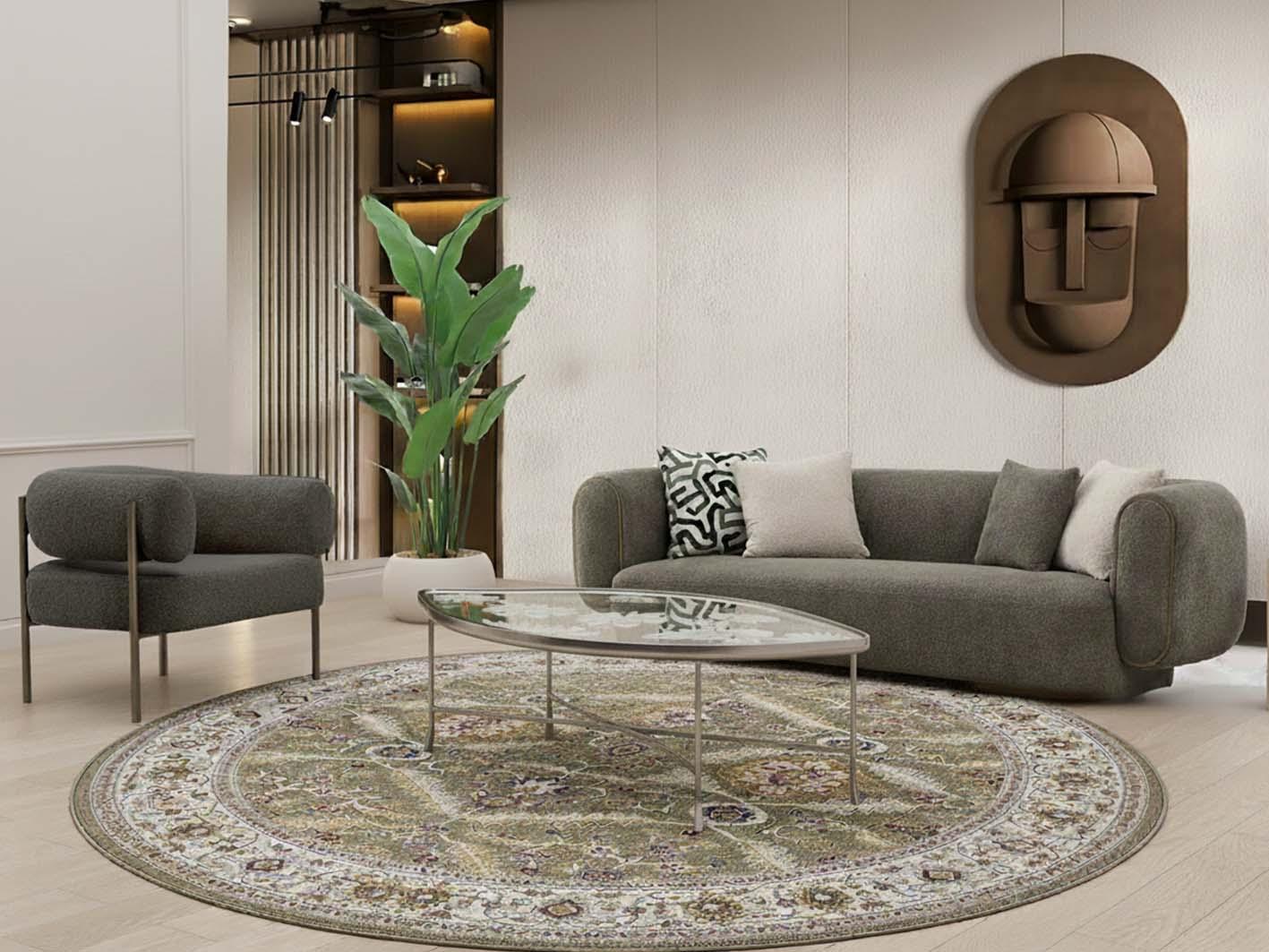 استمتع بفخامة الأرضيات مع السجادة الدائرية الفاخرة جونا البلجيكية، التي تجمع بين التصميم الأوروبي الكلاسيكي والراحة الحديثة. تضيف النقوش الدقيقة والألوان الدافئة، مثل الذهبي، الأزرق الأحمر، والاخضر، لمسة أنيقة لأي مساحة.