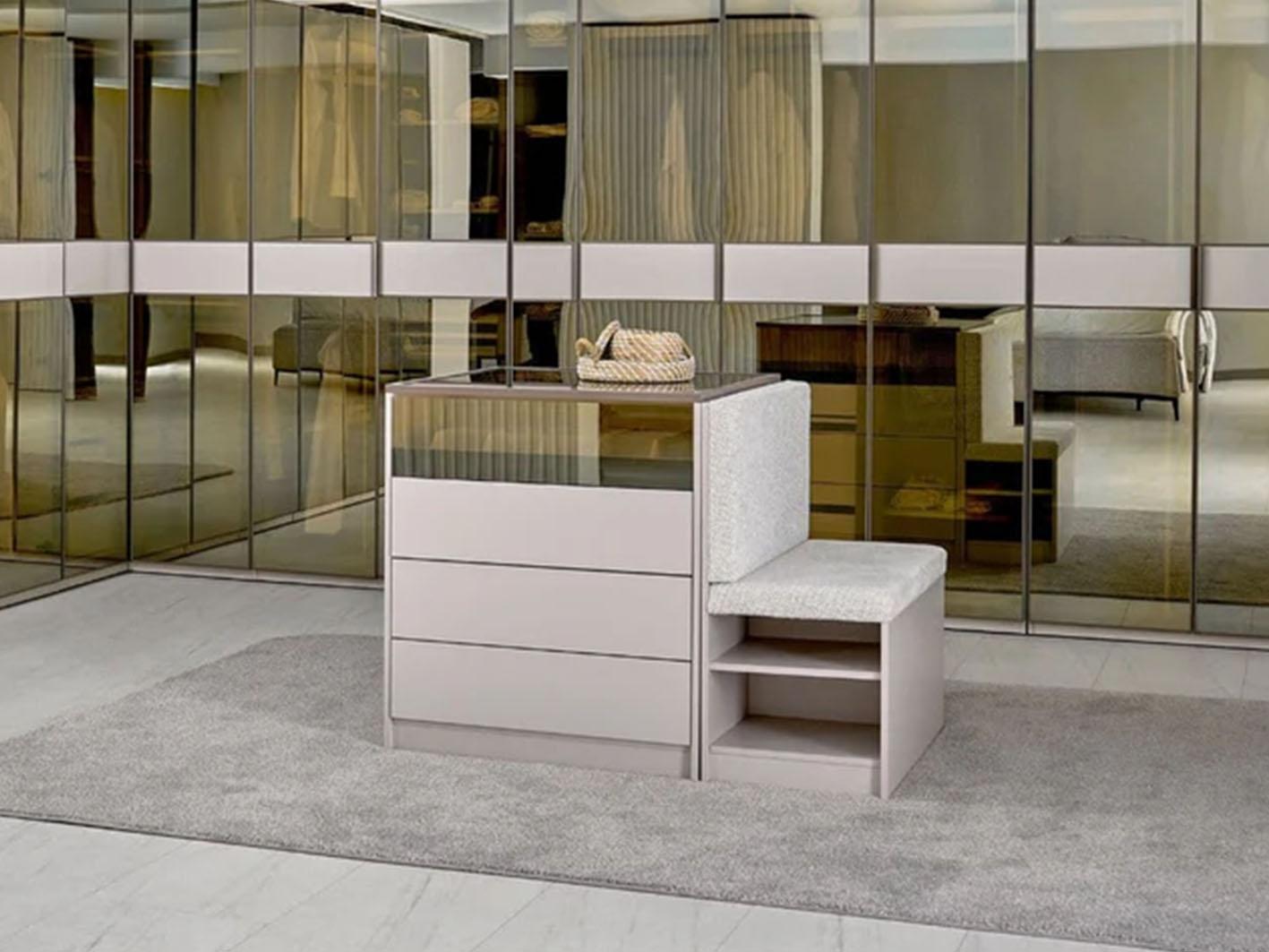 الأدراج تعمل بسلاسة والسطح الزجاجي سهل التنظيف، مما يجعل صيانة الجزيرة بسيطة ومريحة، لتبقى الغرفة دائمًا منظمة وأنيقة.