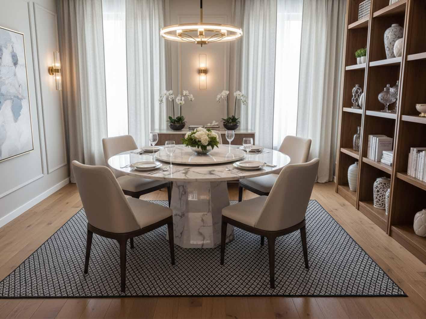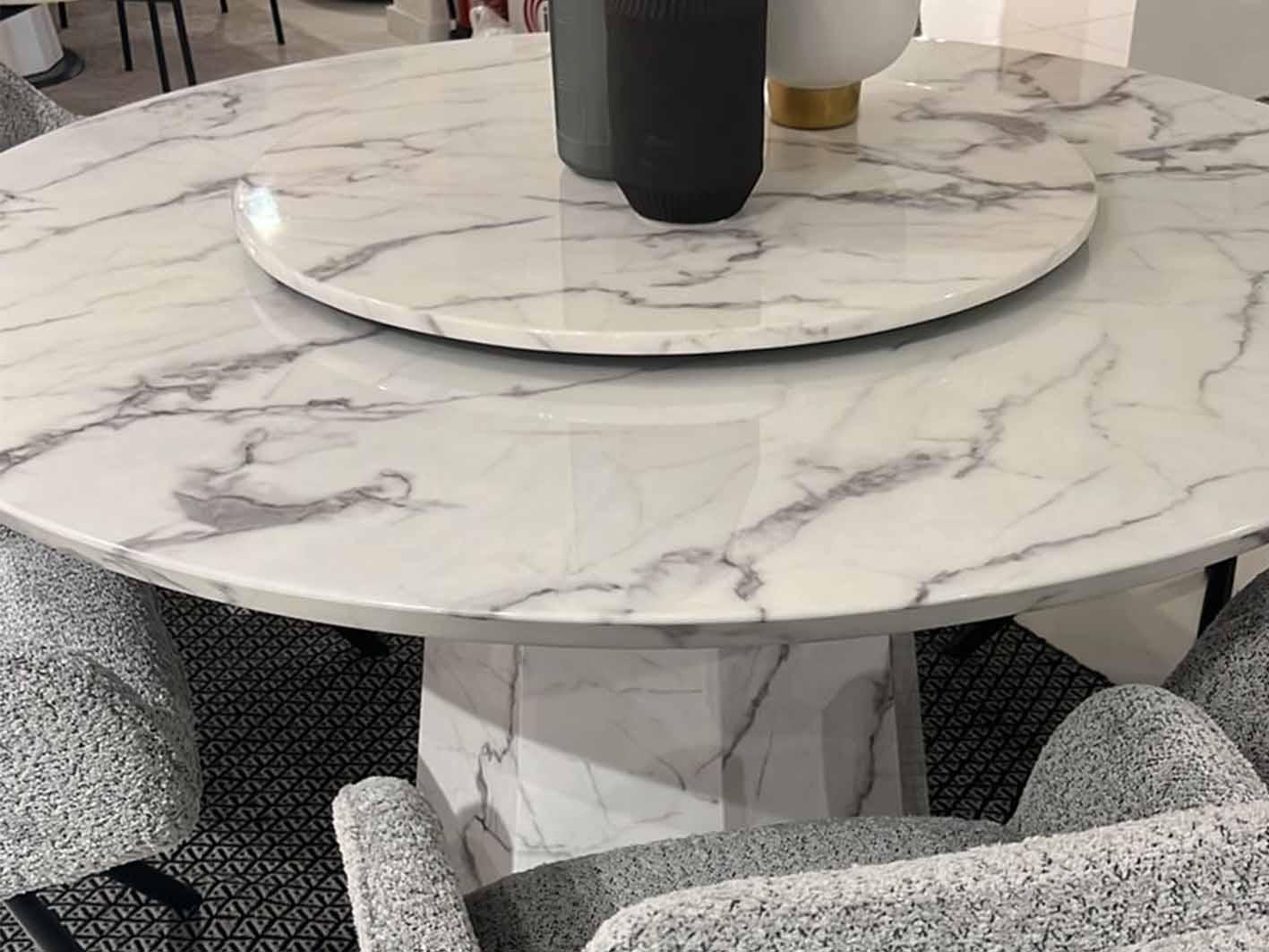 مارفيلا طاولة طعام دائرية من الرخام الصناعي – فخامة تتحدث عن نفسها