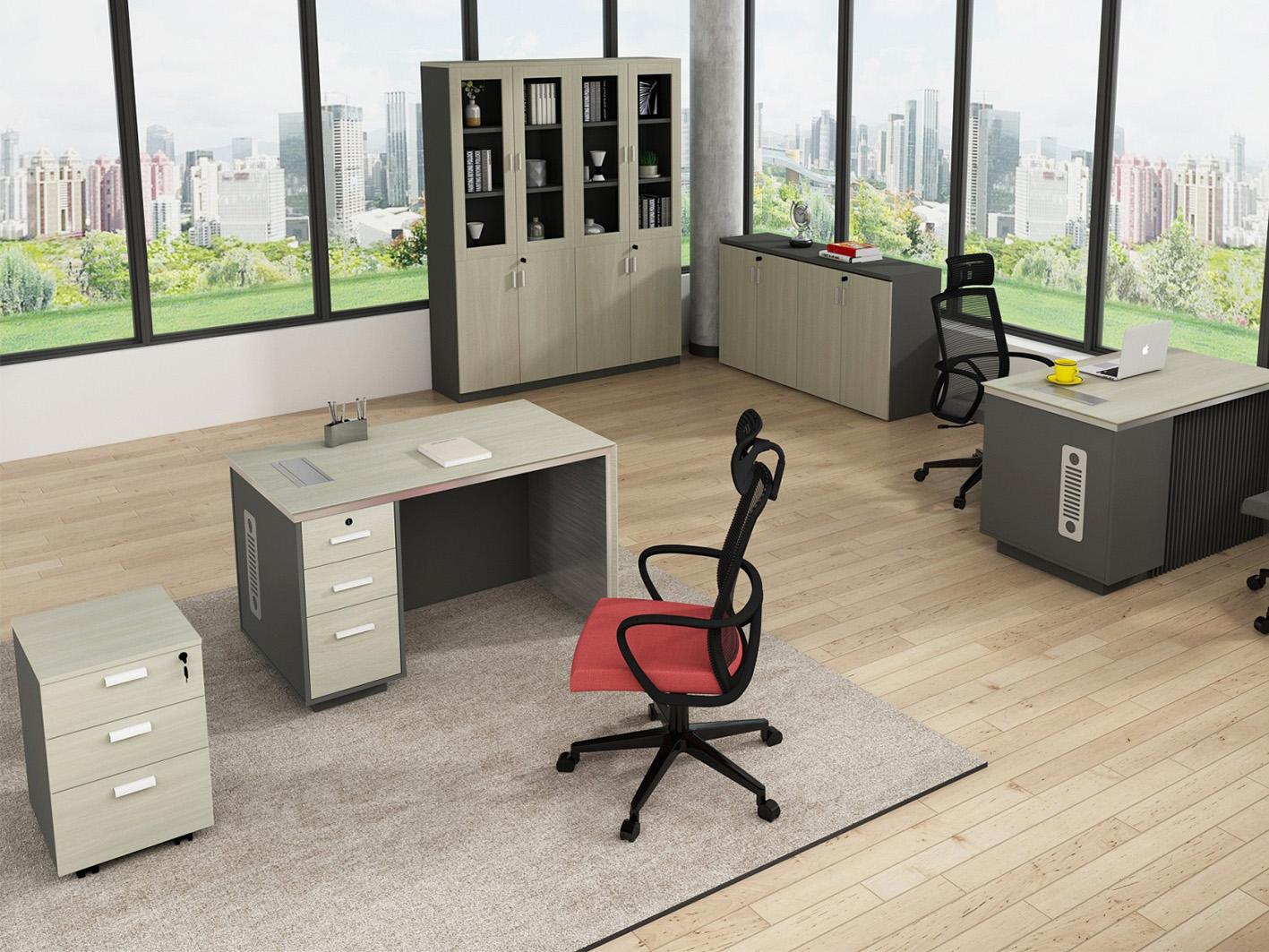 مصنوعة من خشب عالي الجودة يتميز بالمتانة وطول العمر، مع تشطيب نهائي يجمع بين اللون الرمادي الأنيق والأخشاب الطبيعية التي تضفي دفءً وجاذبية على مكتبك.