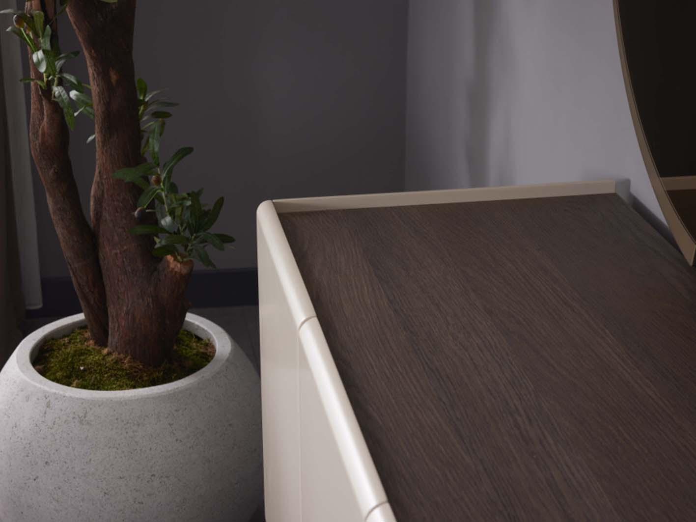 يتميز السطح بلون هادئ ولمسة ناعمة تتناغم مع مختلف أنماط الديكور، سواء المودرن أو المعاصر. يمكن استخدامه لعرض الإكسسوارات، القطع الفنية، النباتات، أو المرايا الصغيرة، ليضفي على المساحة طابعاً شخصياً أنيقاً دون ازدحام بصري.